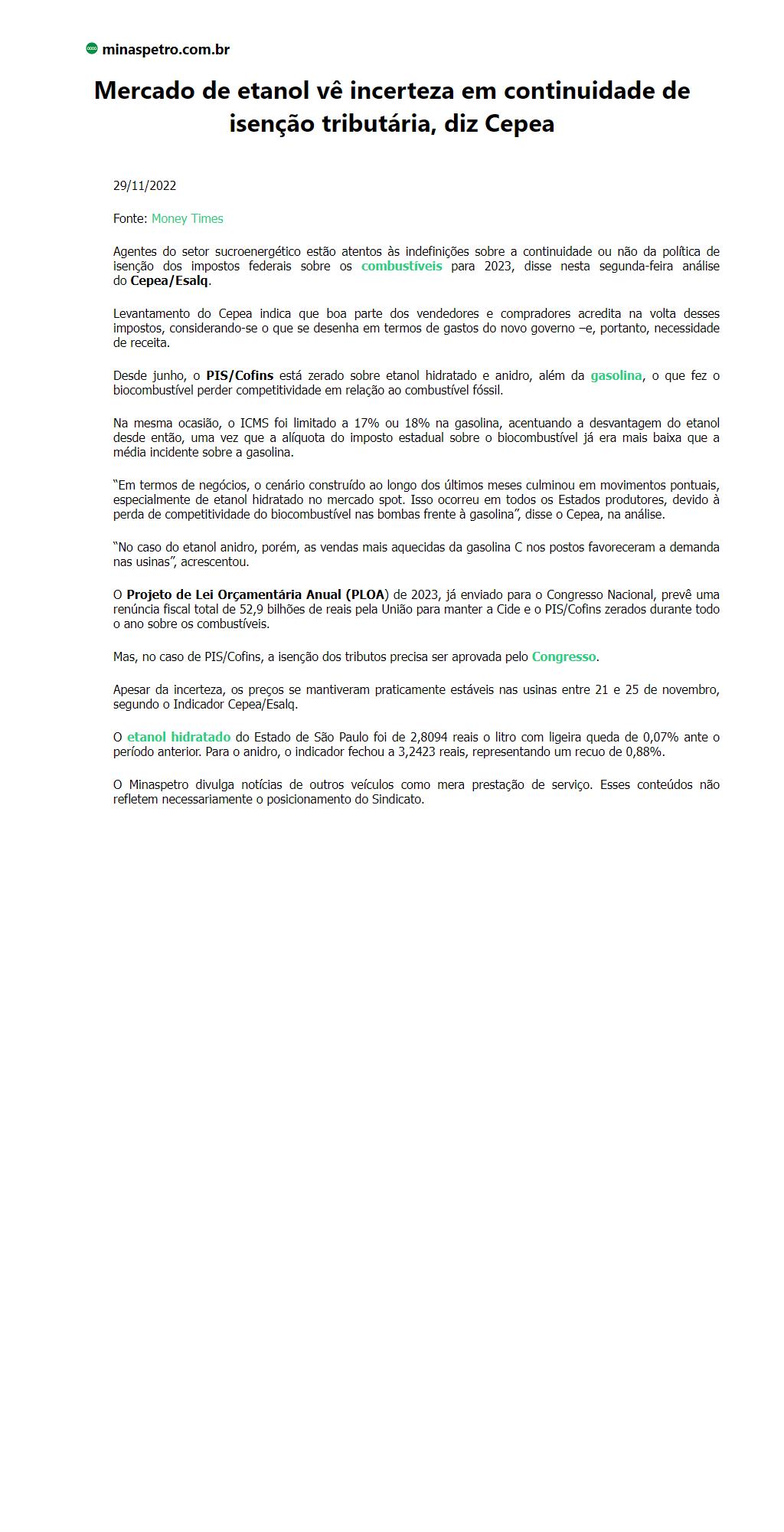 Mercado de etanol vê incerteza em continuidade de isenção tributária, diz Cepea