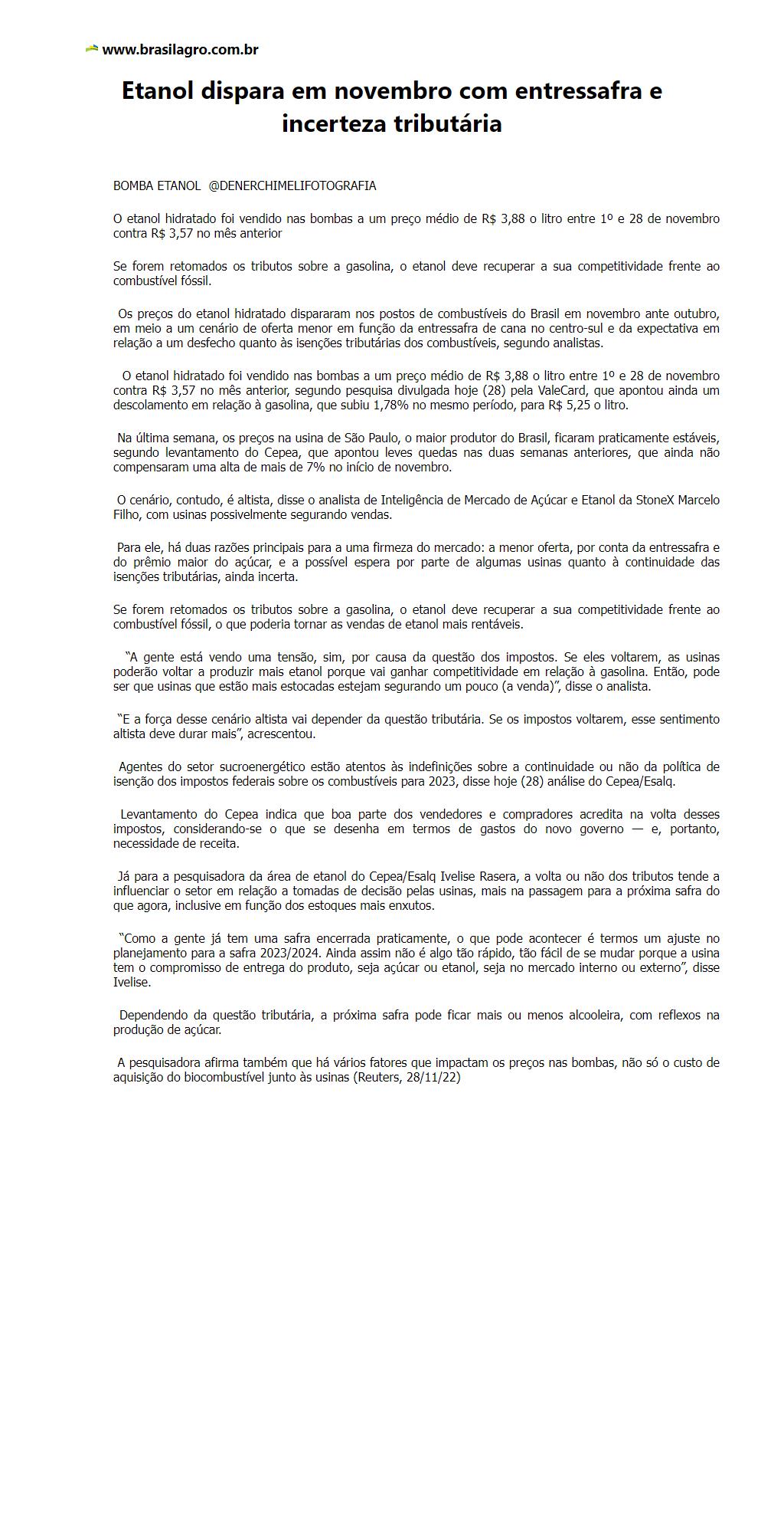 Etanol dispara em novembro com entressafra e incerteza tributária