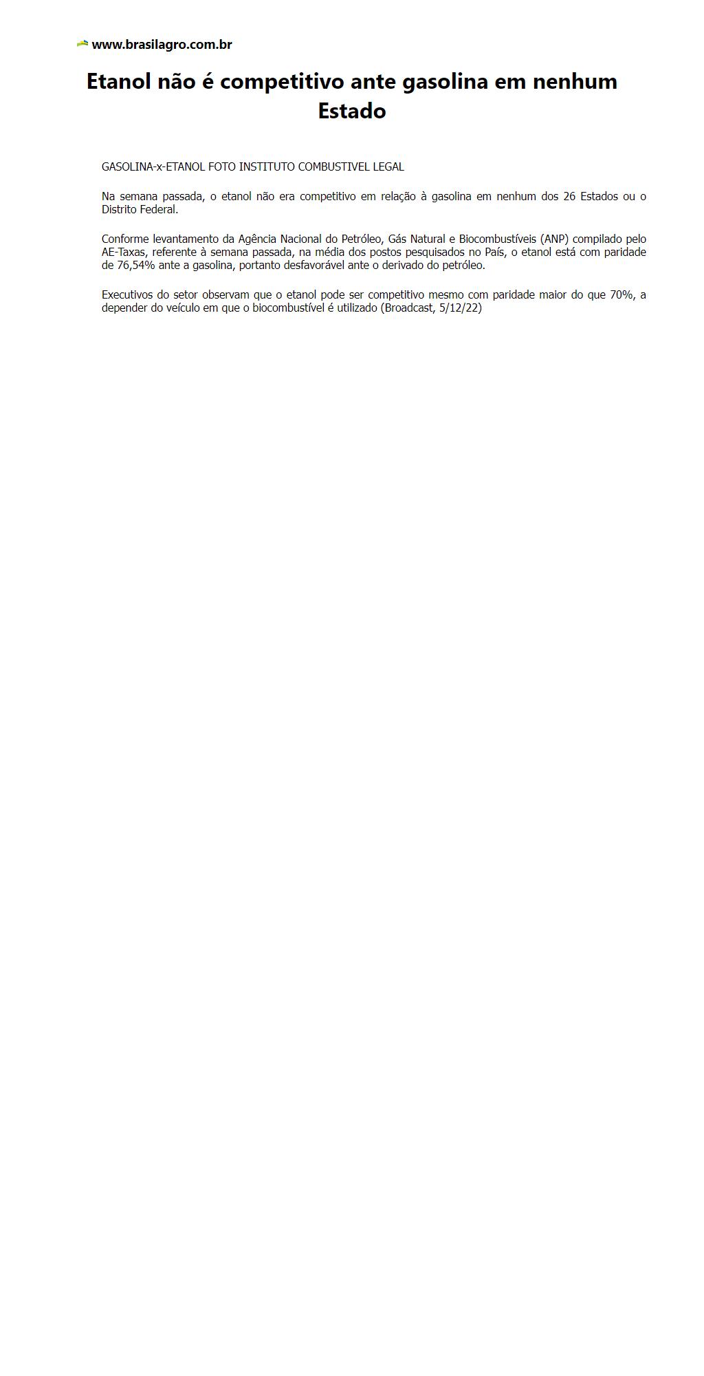 Etanol não é competitivo ante gasolina em nenhum Estado