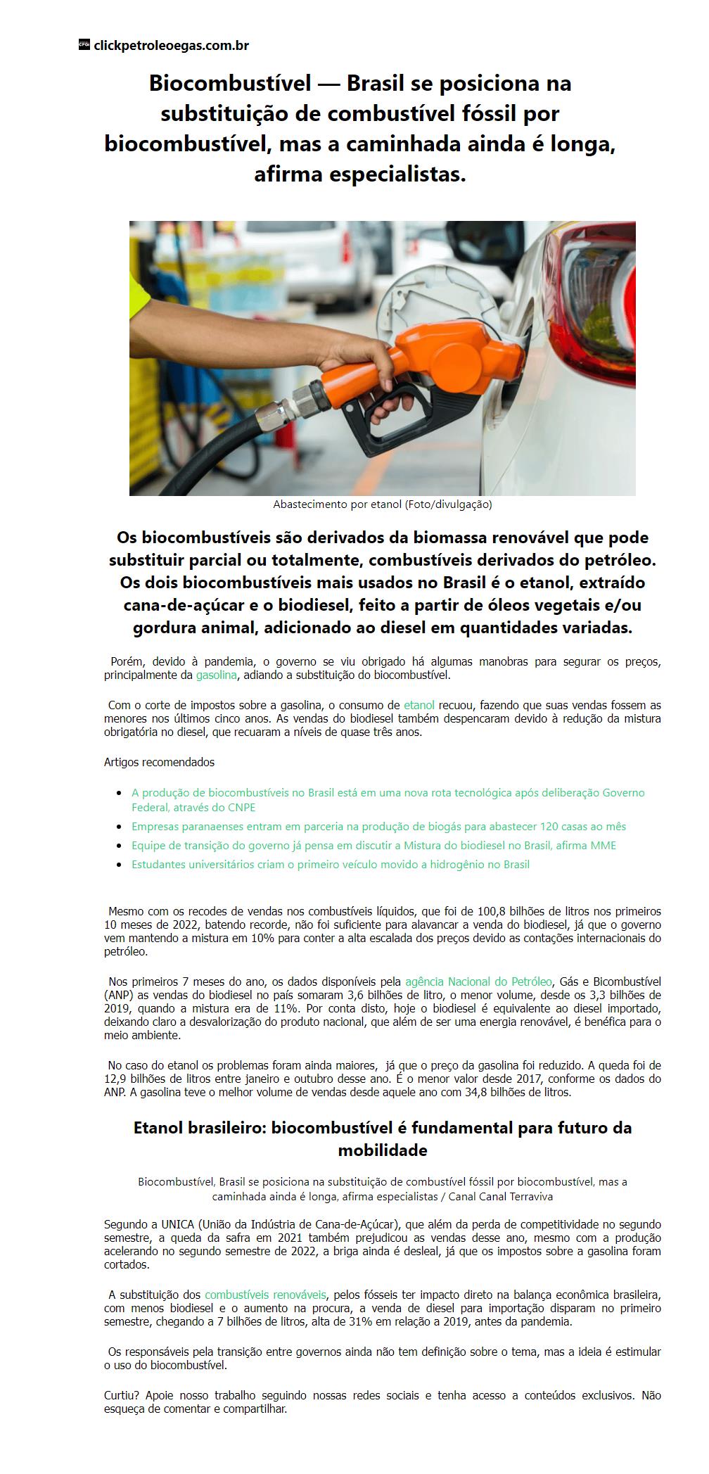 Biocombustível Brasil se posiciona na substituição de combustível fóssil por biocombustível, mas a caminhada ainda é l