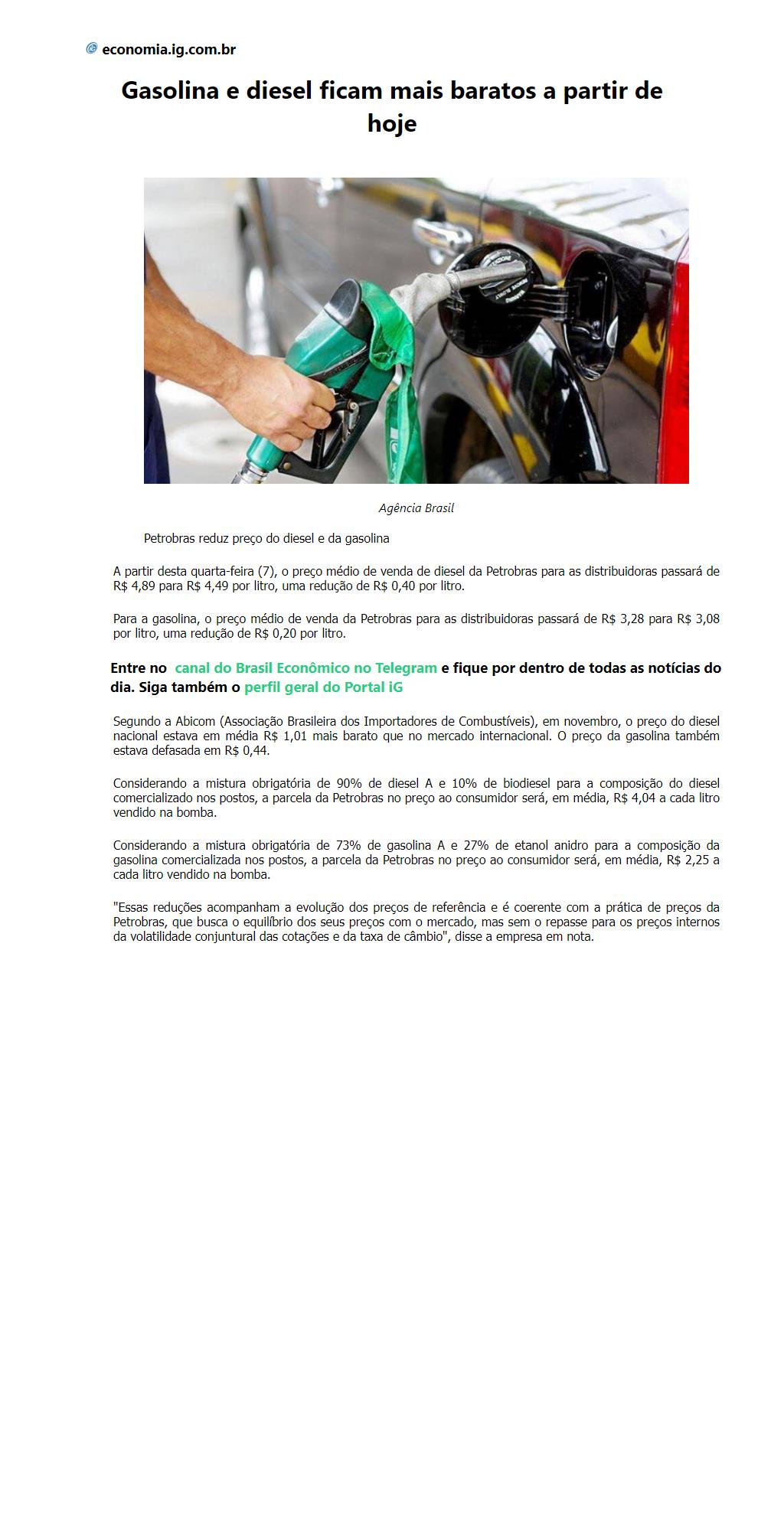 Gasolina e diesel ficam mais baratos a partir de hoje