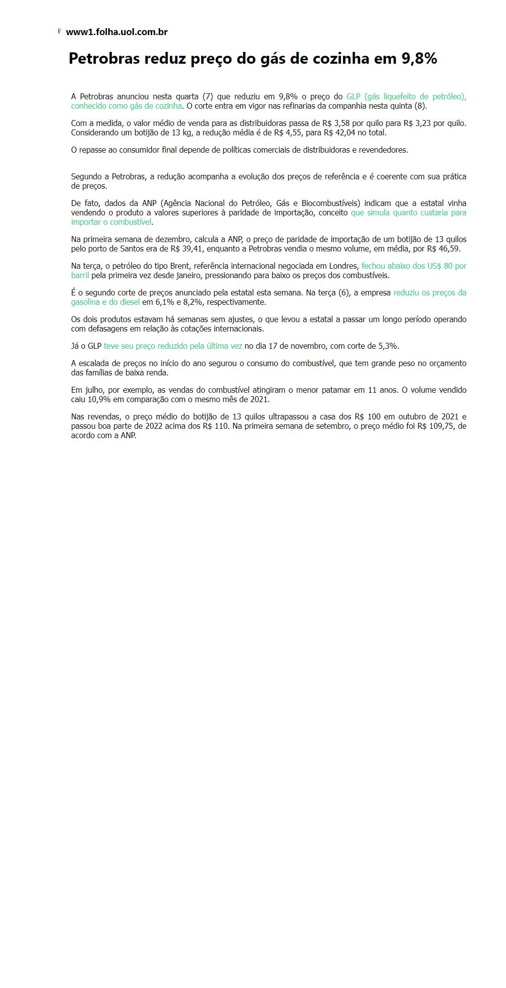 Petrobras reduz preço do gás de cozinha em 9,8%