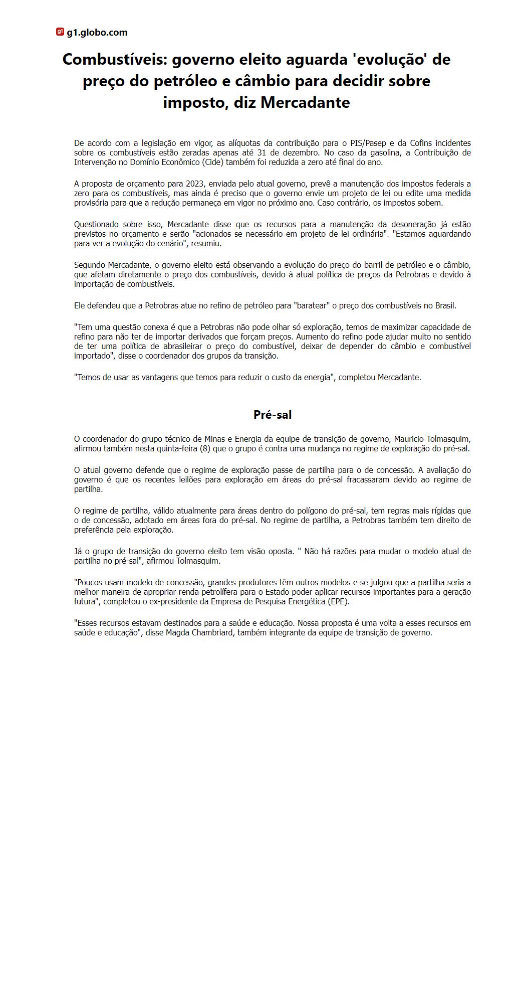 Combustíveis: governo eleito aguarda 'evolução' de preço do petróleo e câmbio para decidir sobre imposto, diz Mercadante
