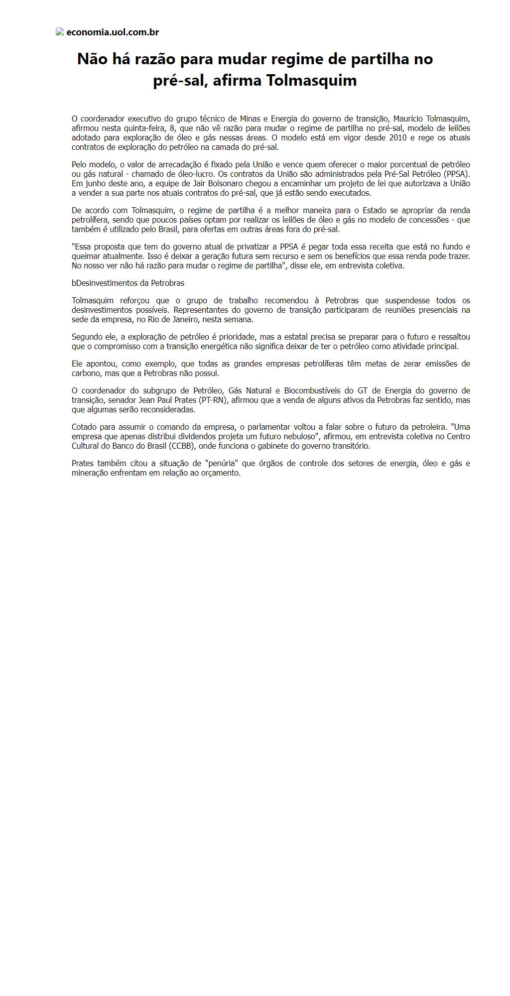 Não há razão para mudar regime de partilha no pré-sal, afirma Tolmasquim
