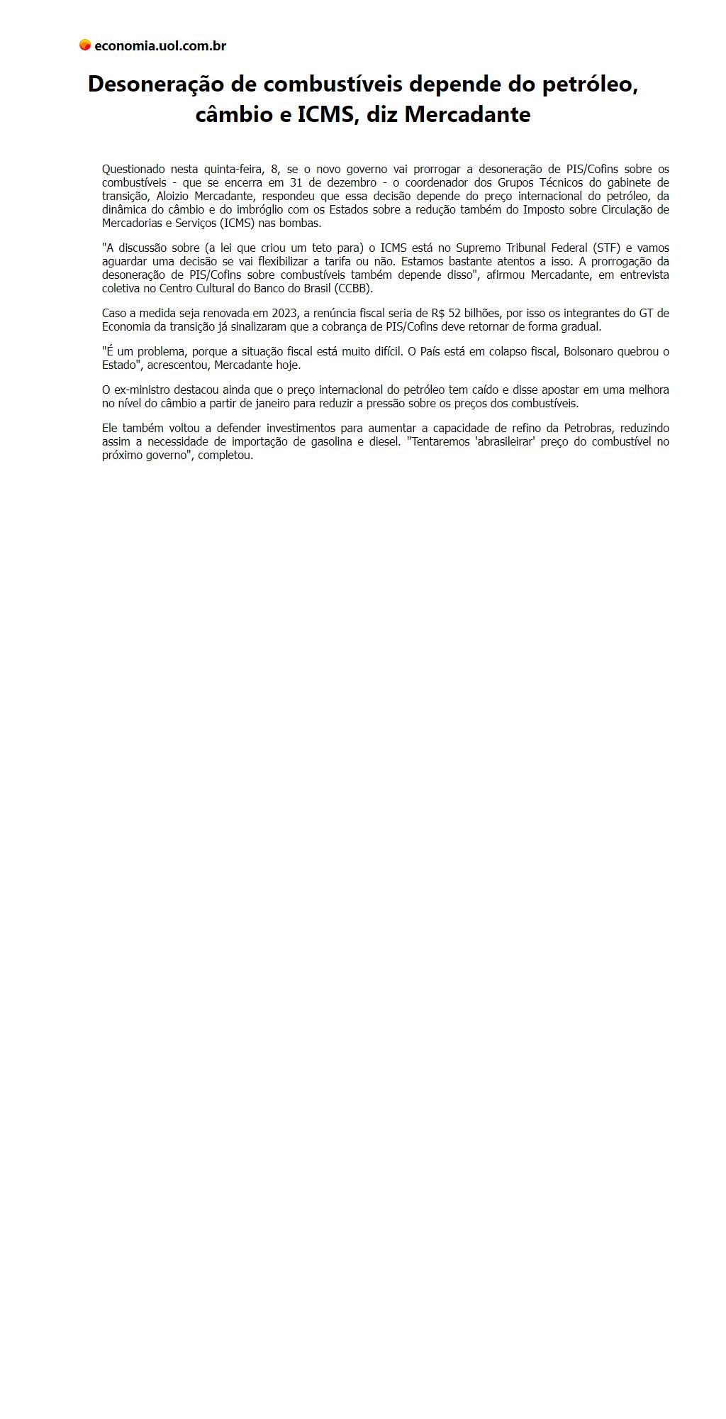 Desoneração de combustíveis depende do petróleo, câmbio e ICMS, diz Mercadante