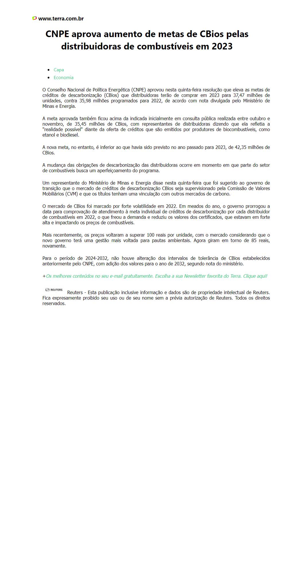 CNPE aprova aumento de metas de CBios pelas distribuidoras de combustíveis em 2023