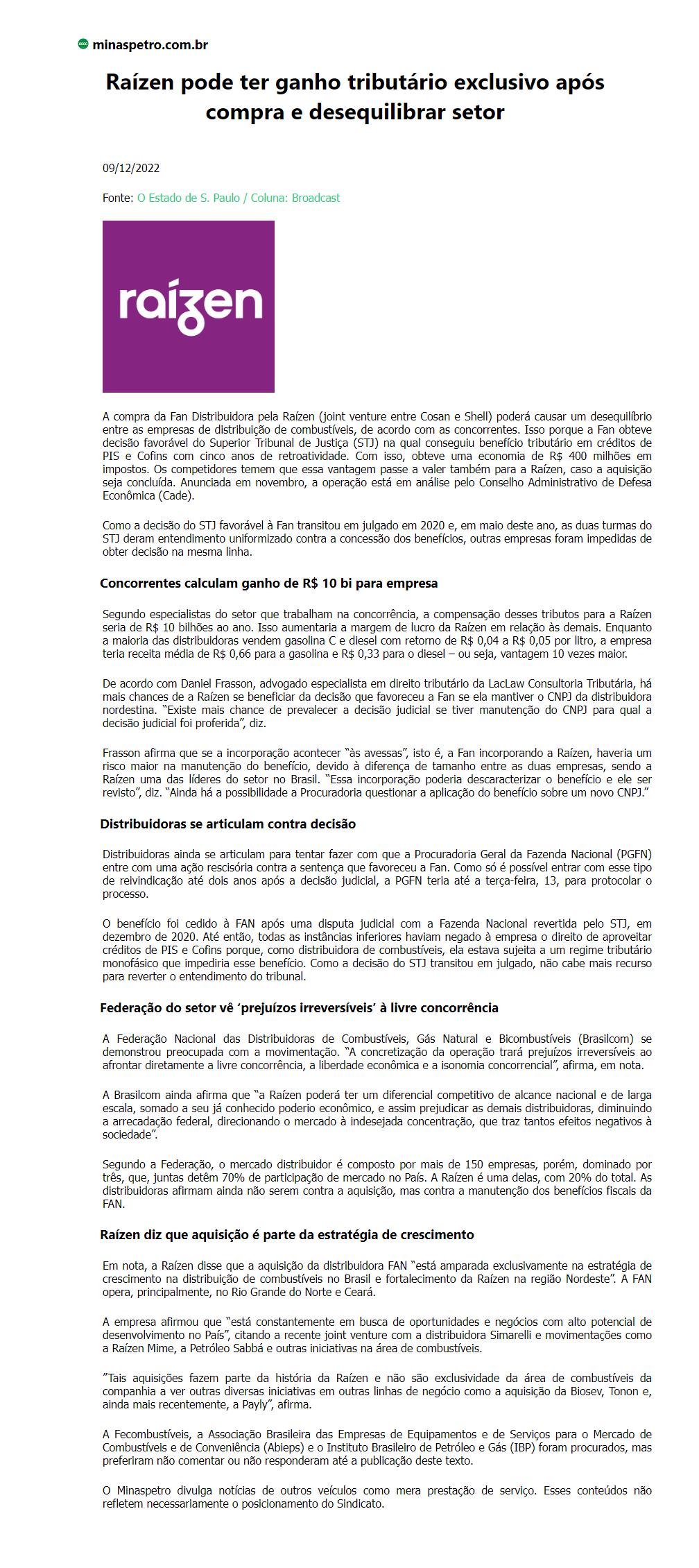 Raízen pode ter ganho tributário exclusivo após compra e desequilibrar setor