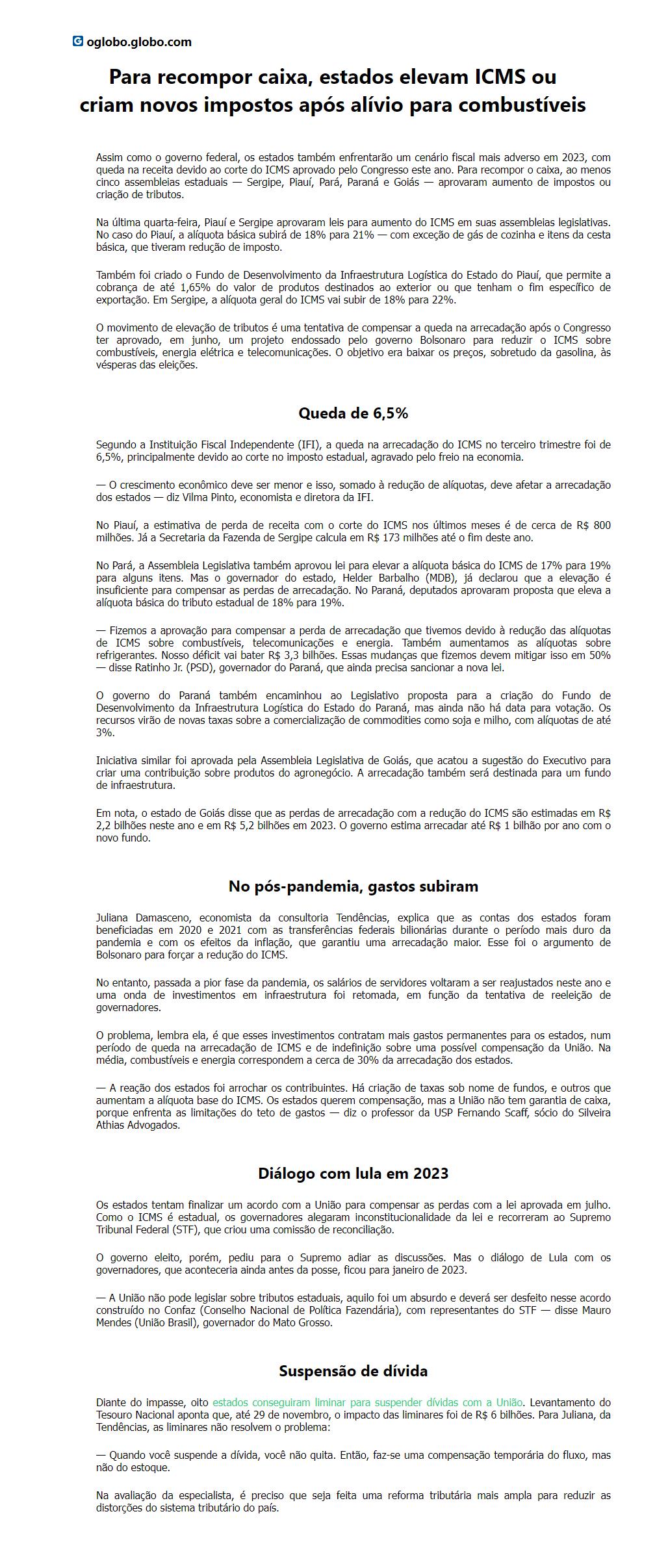 Para recompor caixa, estados elevam ICMS ou criam novos impostos após alívio para combustíveis