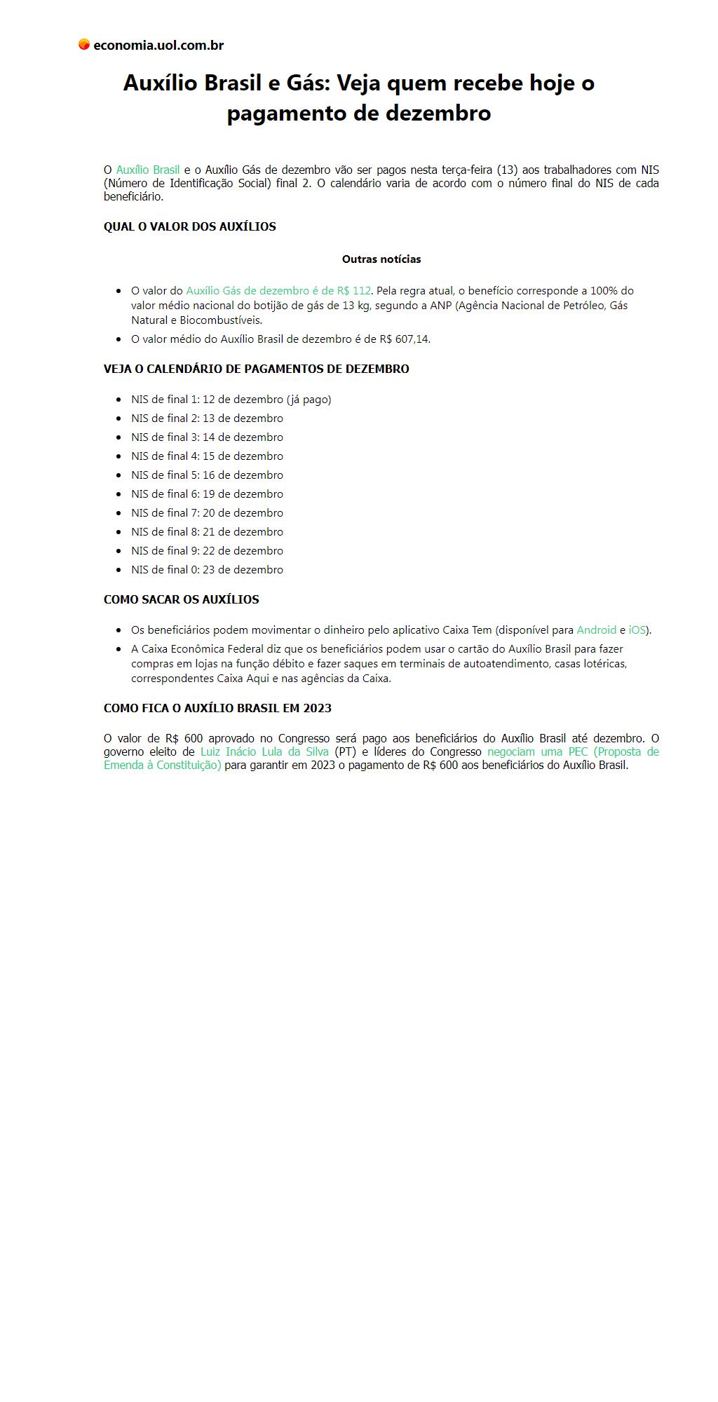 Auxílio Brasil e Gás: Veja quem recebe hoje o pagamento de dezembro
