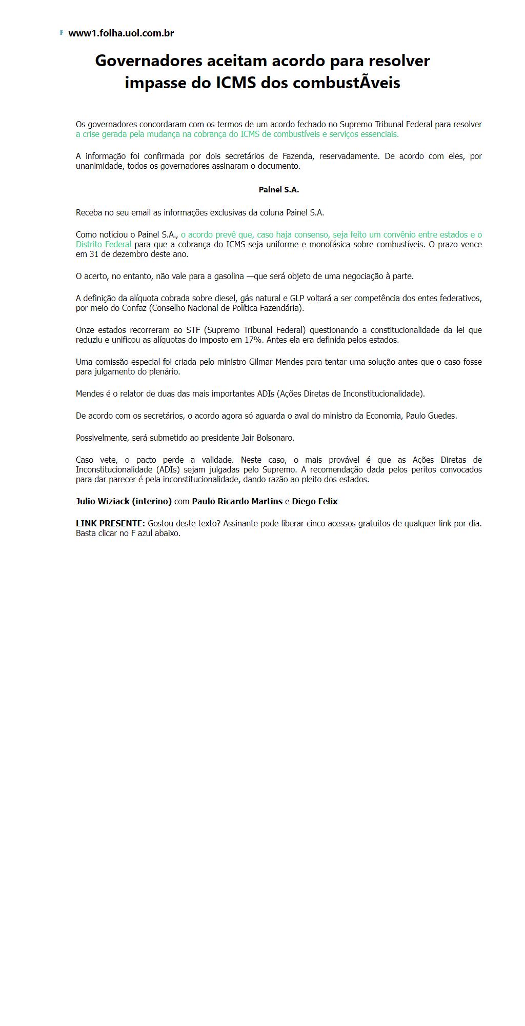 Governadores aceitam acordo para resolver impasse do ICMS dos combustÃveis