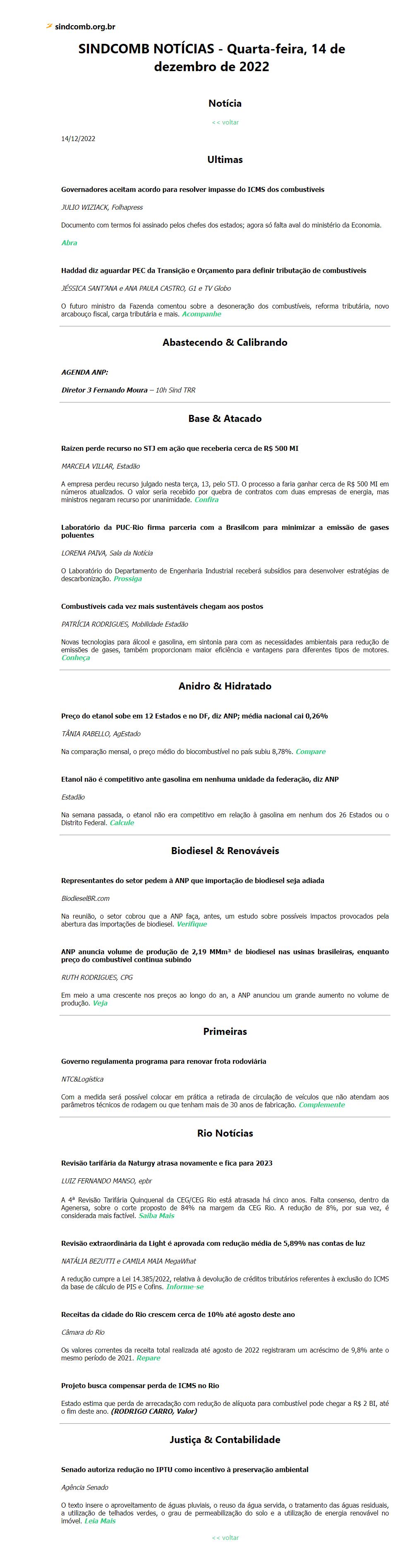 SINDCOMB NOTÍCIAS - Quarta-feira, 14 de dezembro de 2022
