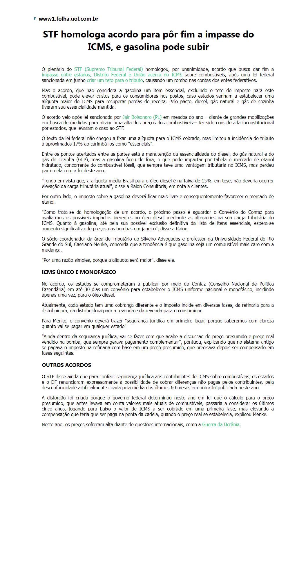 STF homologa acordo para pôr fim a impasse do ICMS, e gasolina pode subir