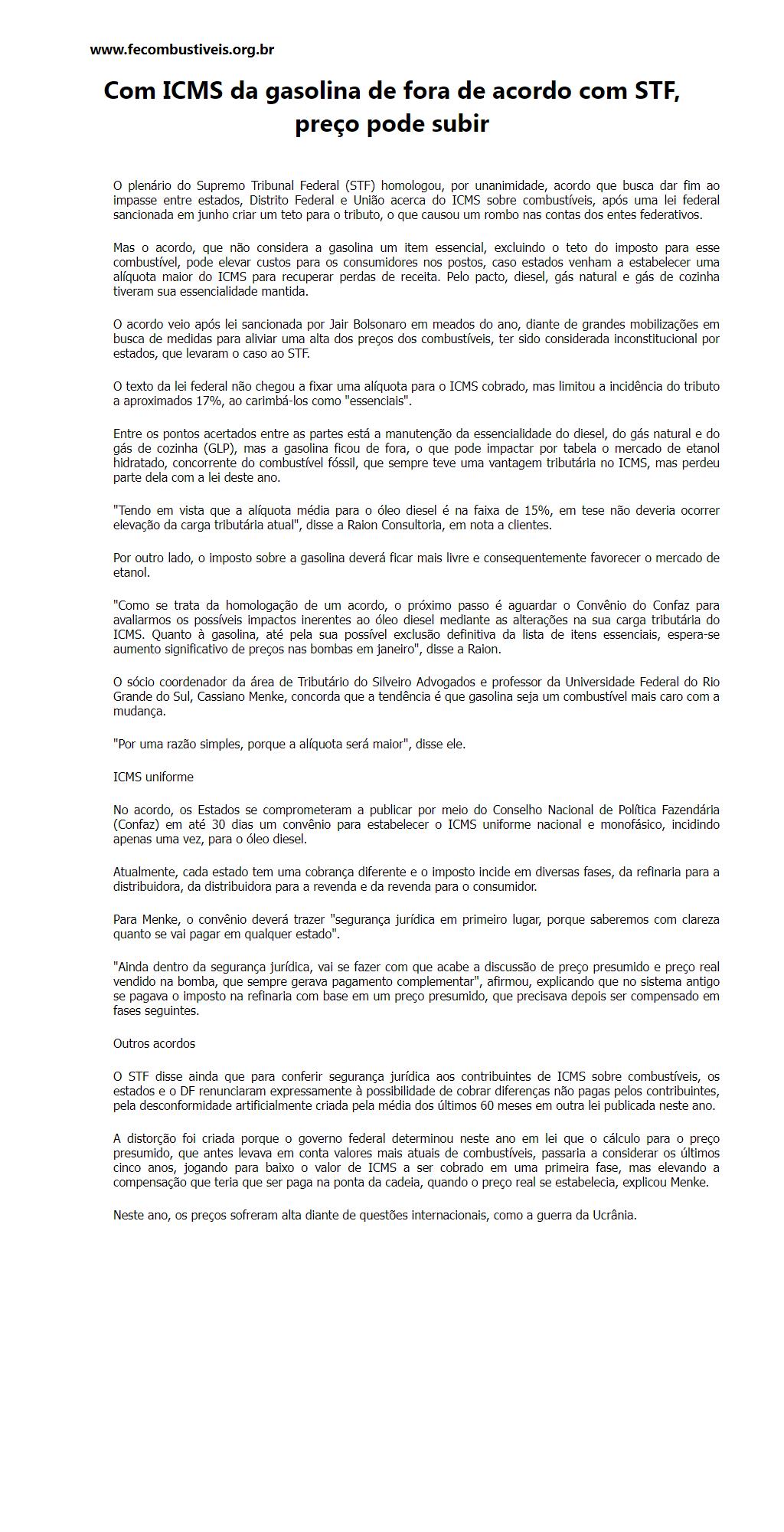 Com ICMS da gasolina de fora de acordo com STF, preço pode subir