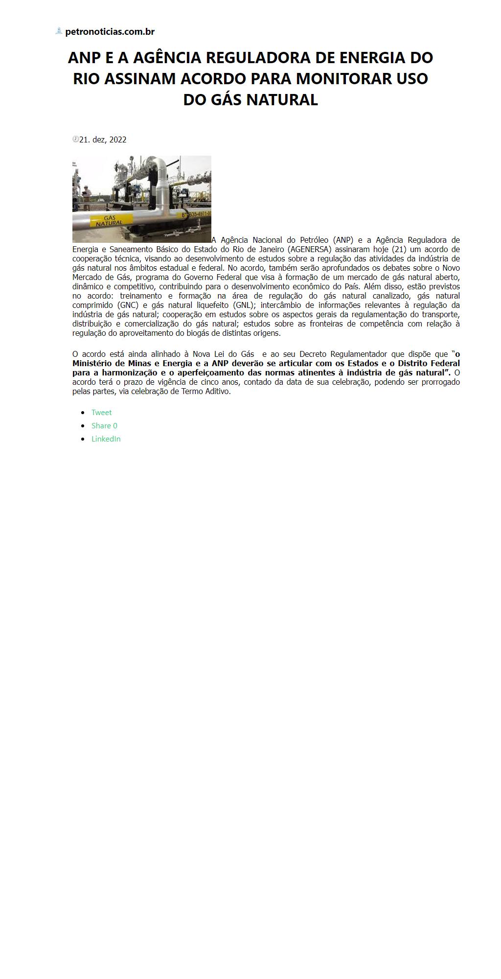ANP E A AGÊNCIA REGULADORA DE ENERGIA DO RIO ASSINAM ACORDO PARA MONITORAR USO DO GÁS NATURAL