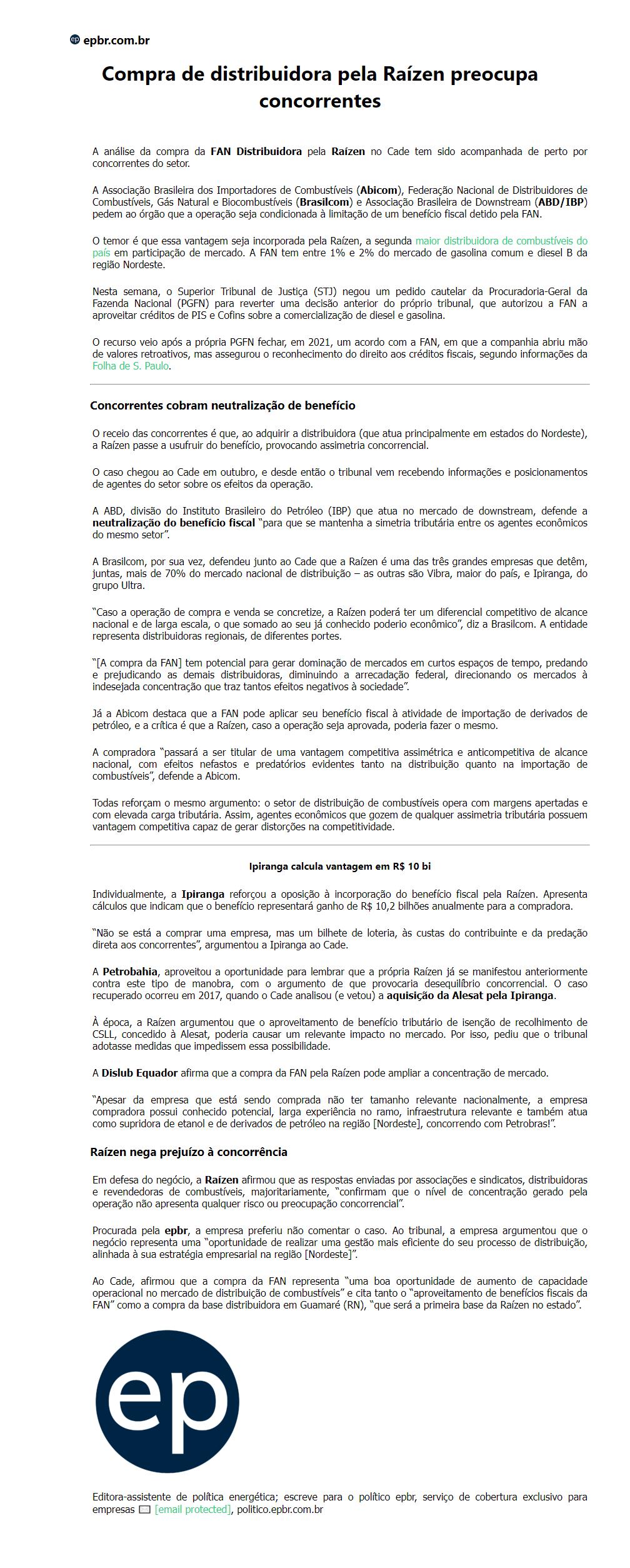 Compra de distribuidora pela Raízen preocupa concorrentes