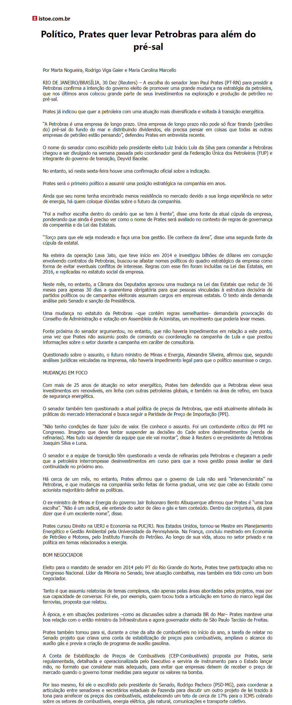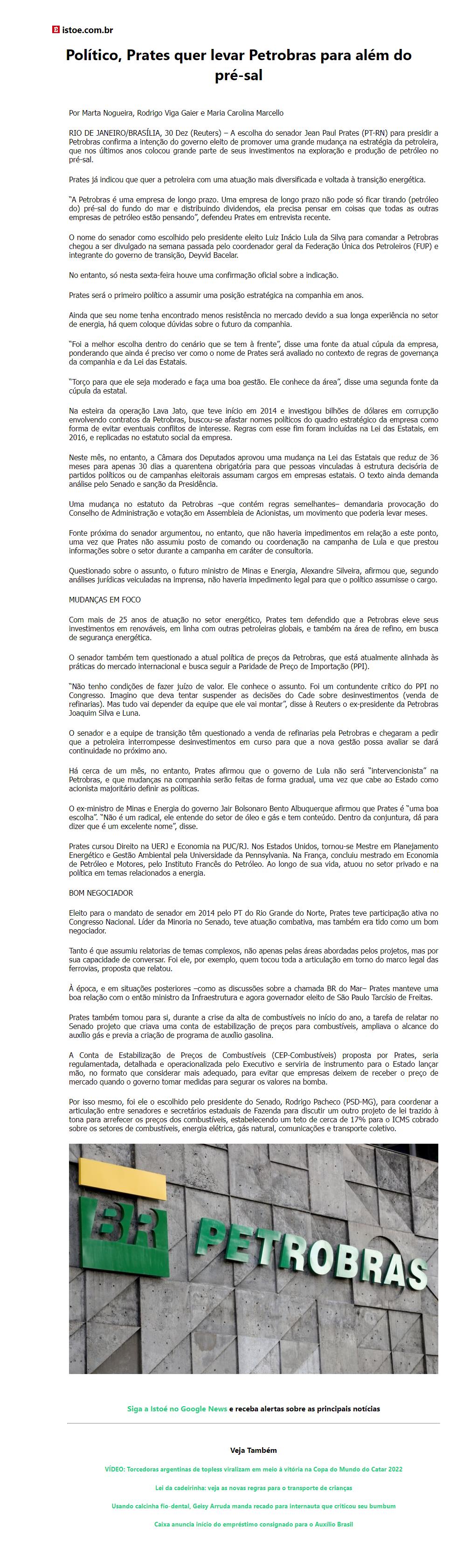 Político, Prates quer levar Petrobras para além do pré-sal