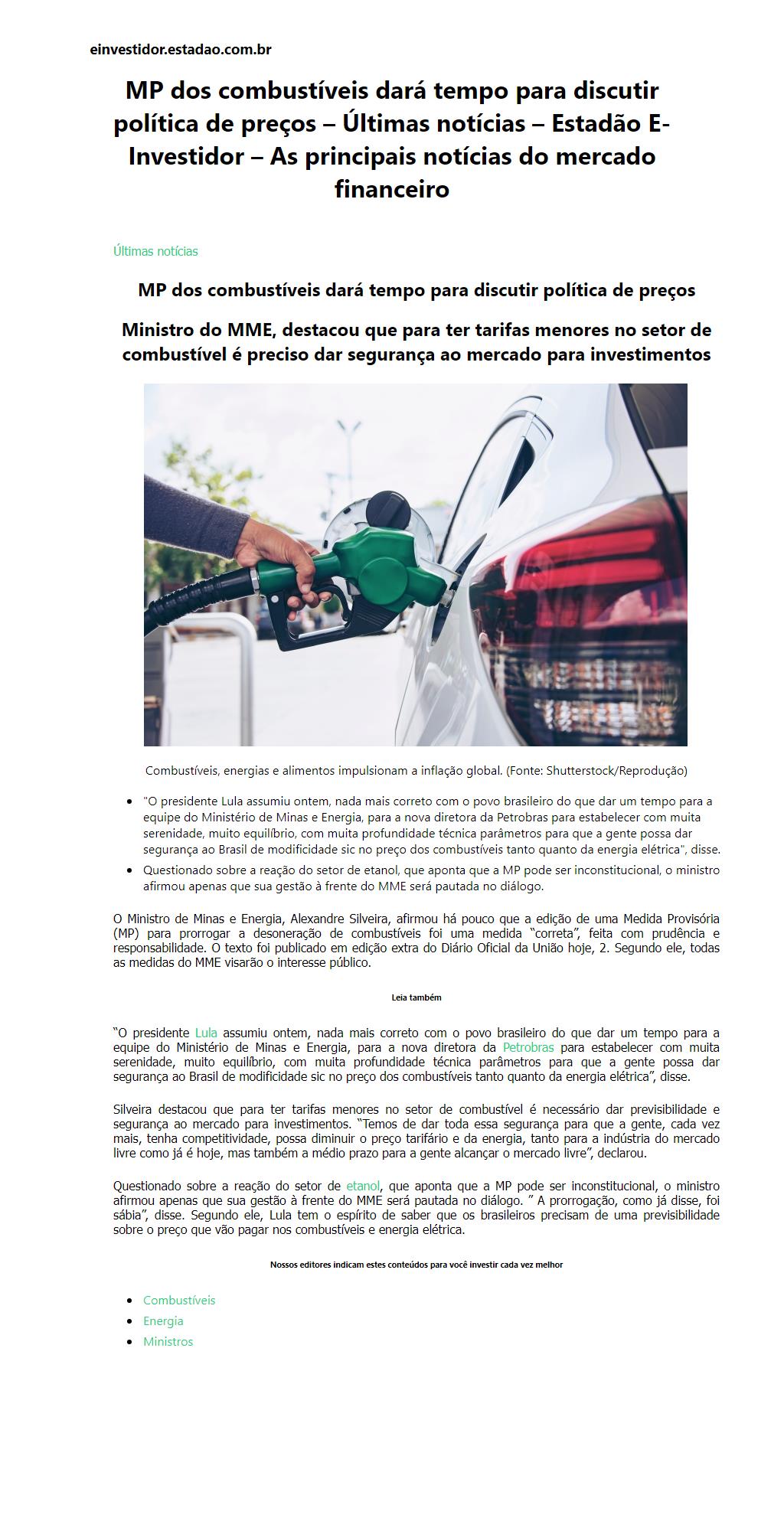 MP dos combustíveis dará tempo para discutir política de preços Últimas notícias Estadão E-Investidor As principai