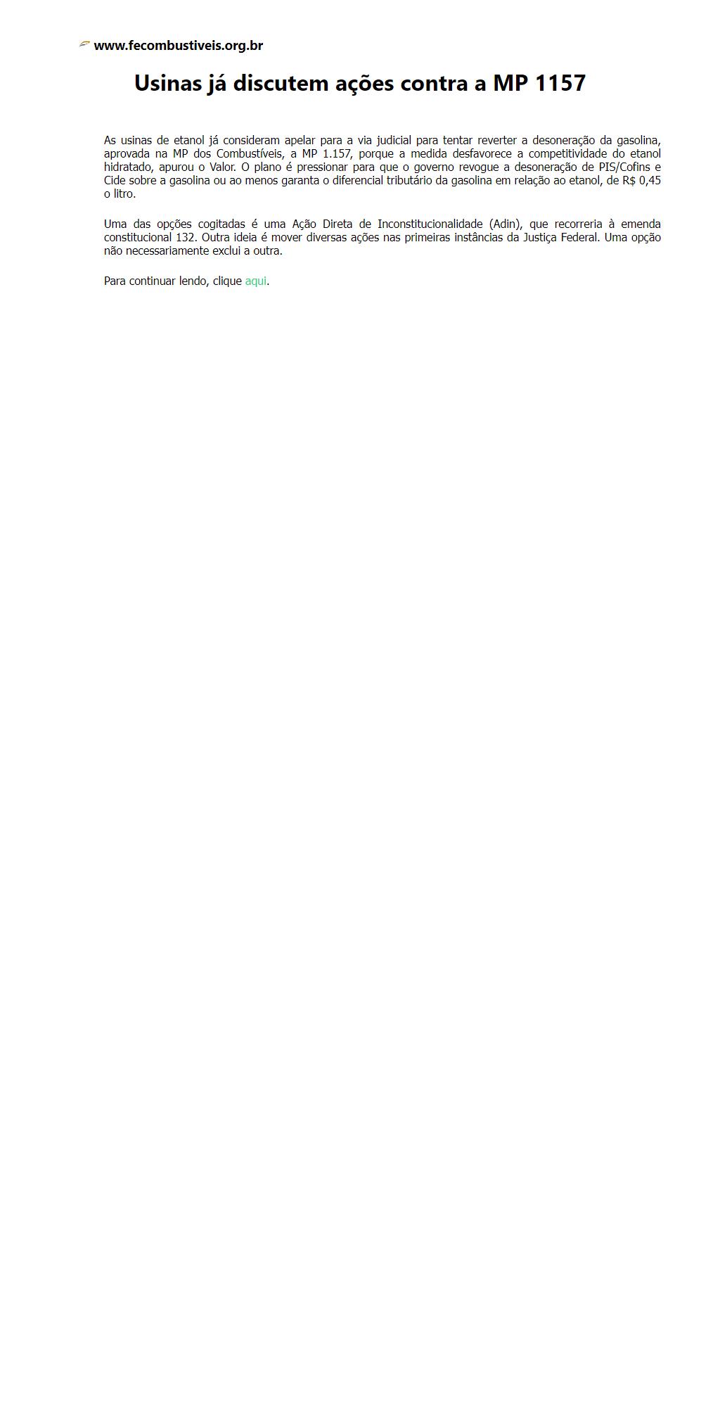 Usinas já discutem ações contra a MP 1157