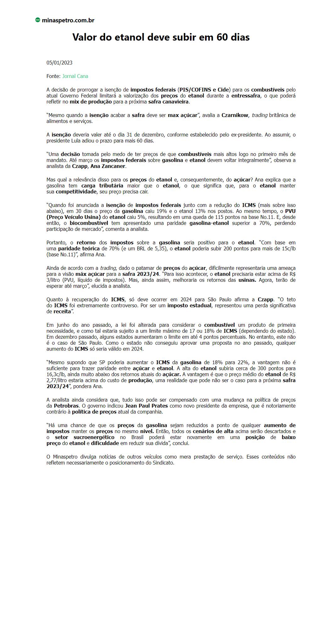 Valor do etanol deve subir em 60 dias