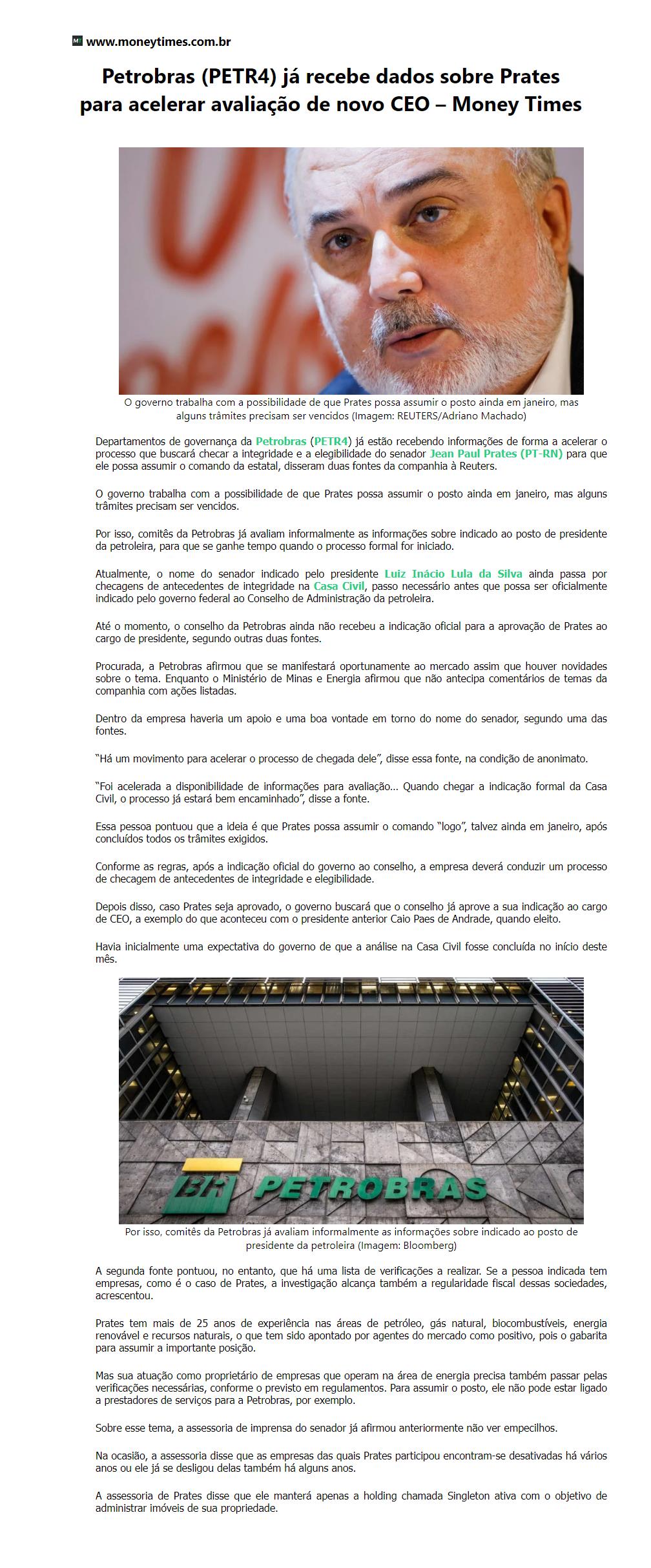 Petrobras (PETR4) já recebe dados sobre Prates para acelerar avaliação de novo CEO Money Times