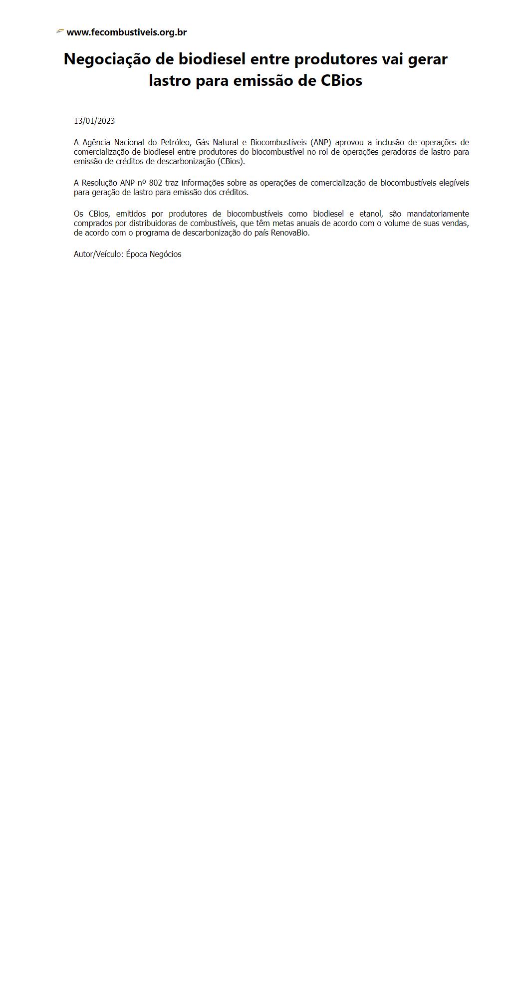 Negociação de biodiesel entre produtores vai gerar lastro para emissão de CBios