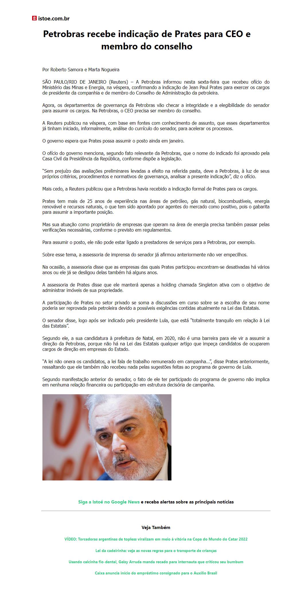 Petrobras recebe indicação de Prates para CEO e membro do conselho