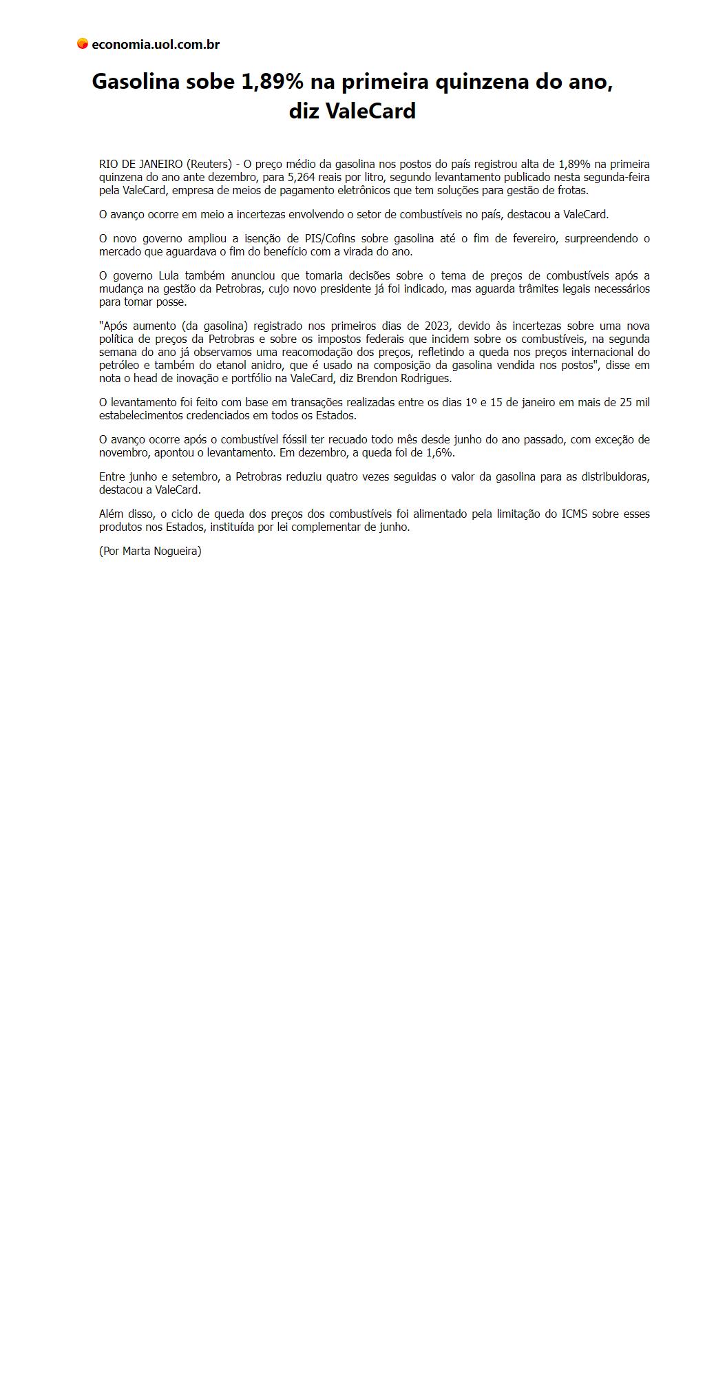 Gasolina sobe 1,89% na primeira quinzena do ano, diz ValeCard