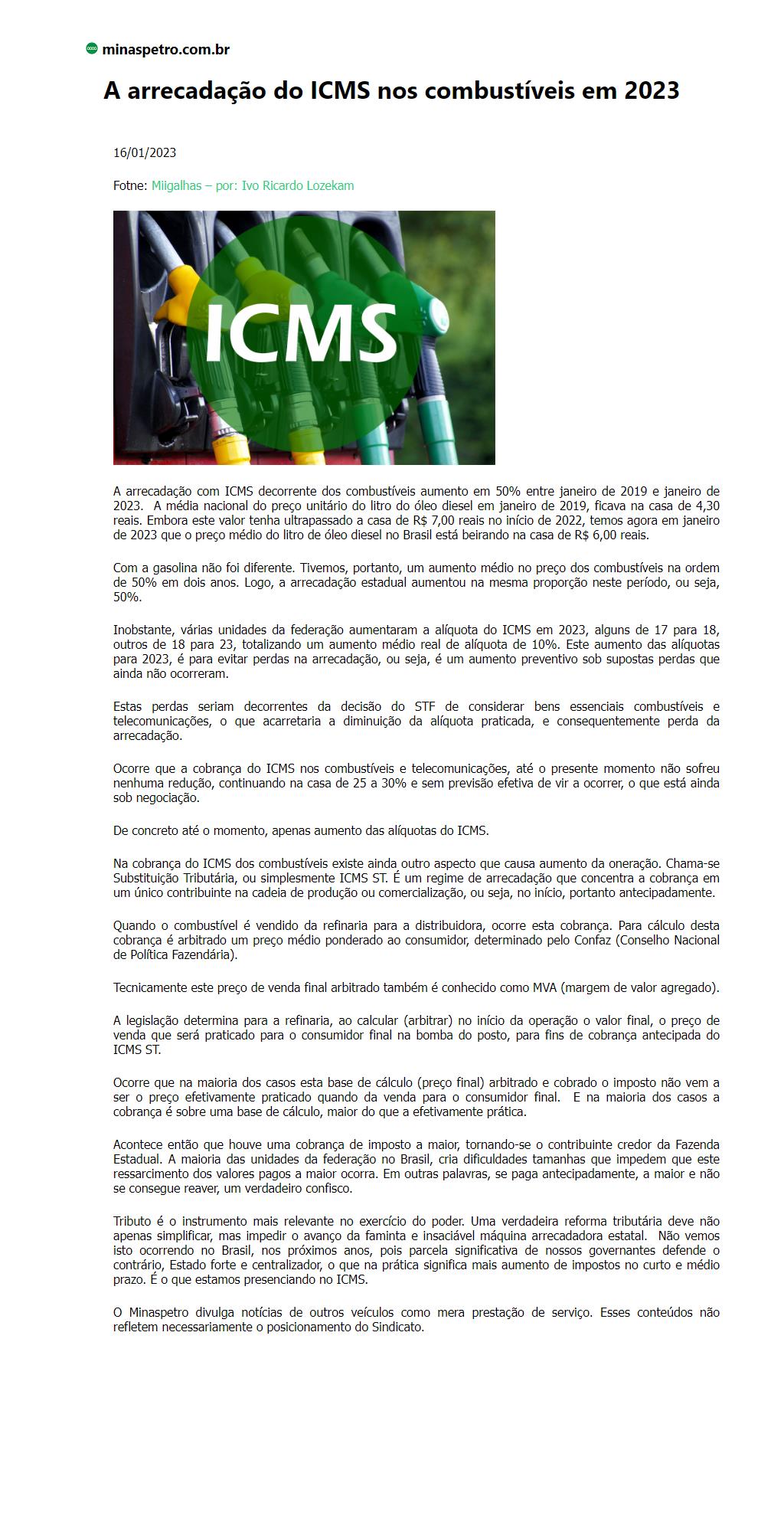 A arrecadação do ICMS nos combustíveis em 2023