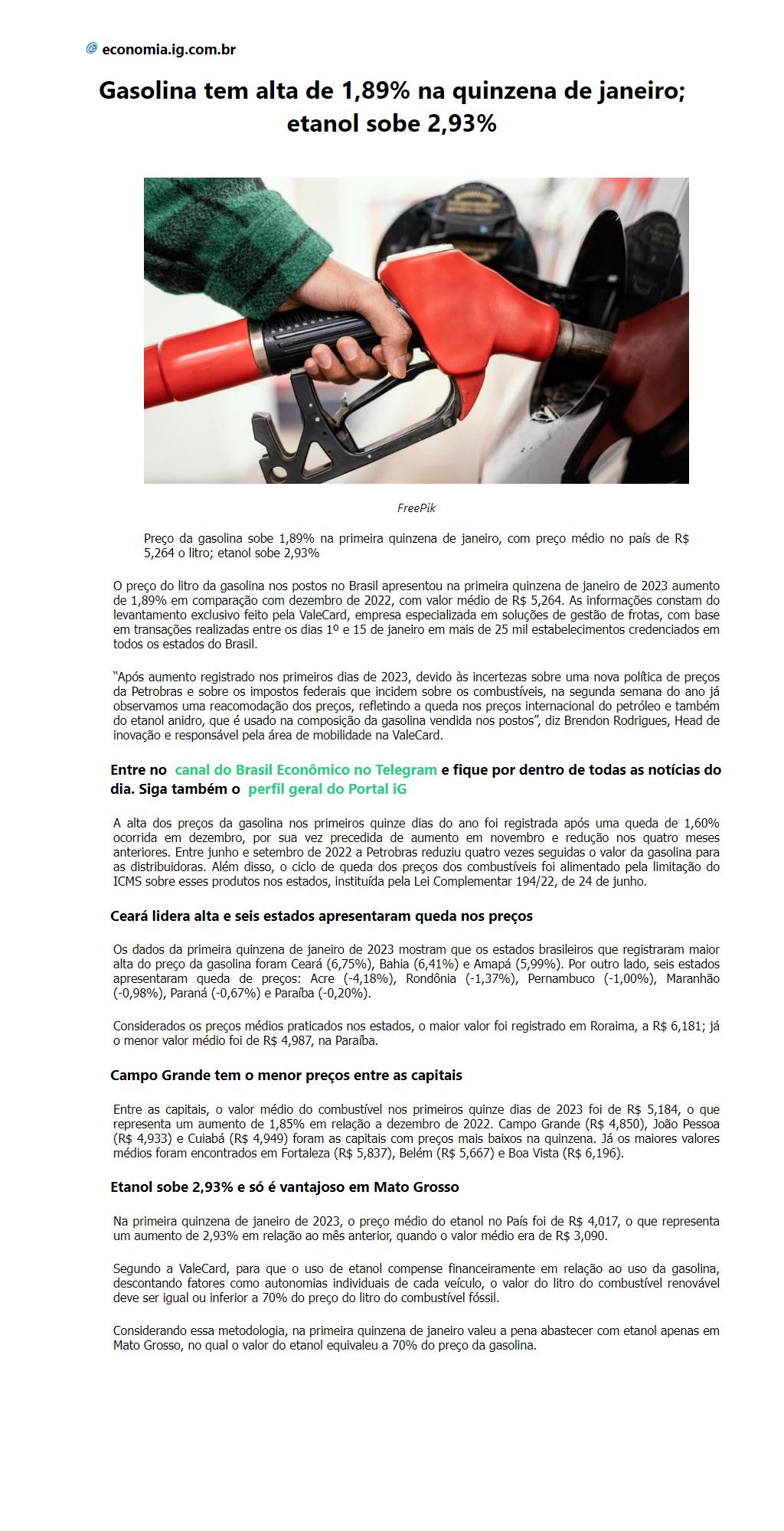 Gasolina tem alta de 1,89% na quinzena de janeiro; etanol sobe 2,93%