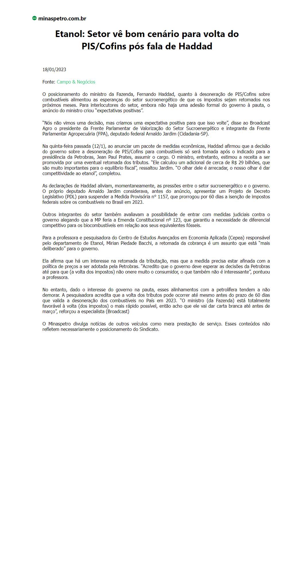 Etanol: Setor vê bom cenário para volta do PIS/Cofins pós fala de Haddad