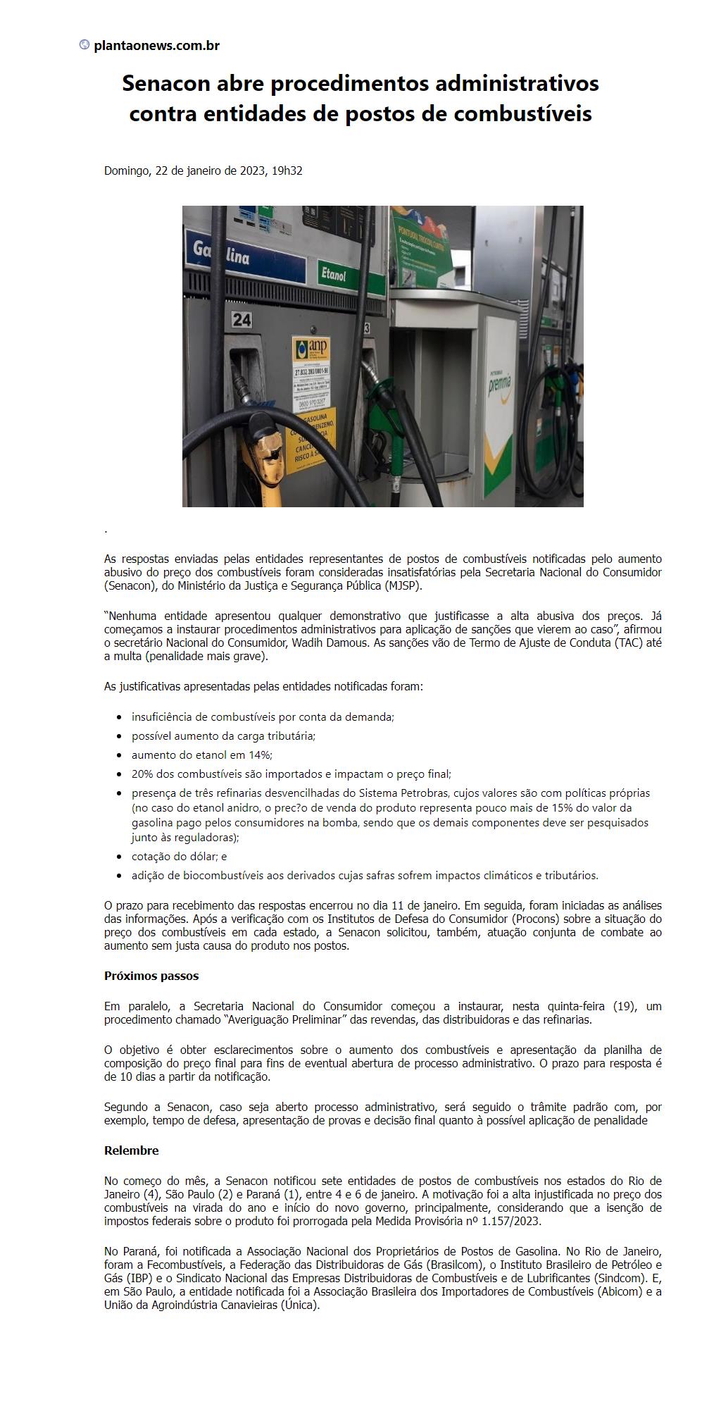 Senacon abre procedimentos administrativos contra entidades de postos de combustíveis