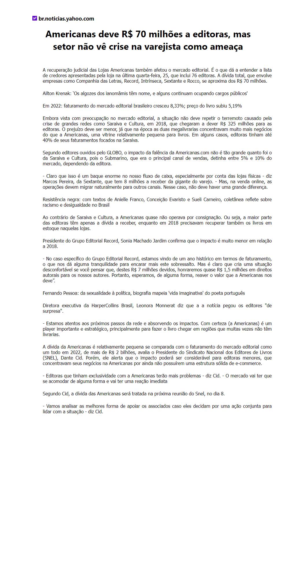 Americanas deve R$ 70 milhões a editoras, mas setor não vê crise na varejista como ameaça