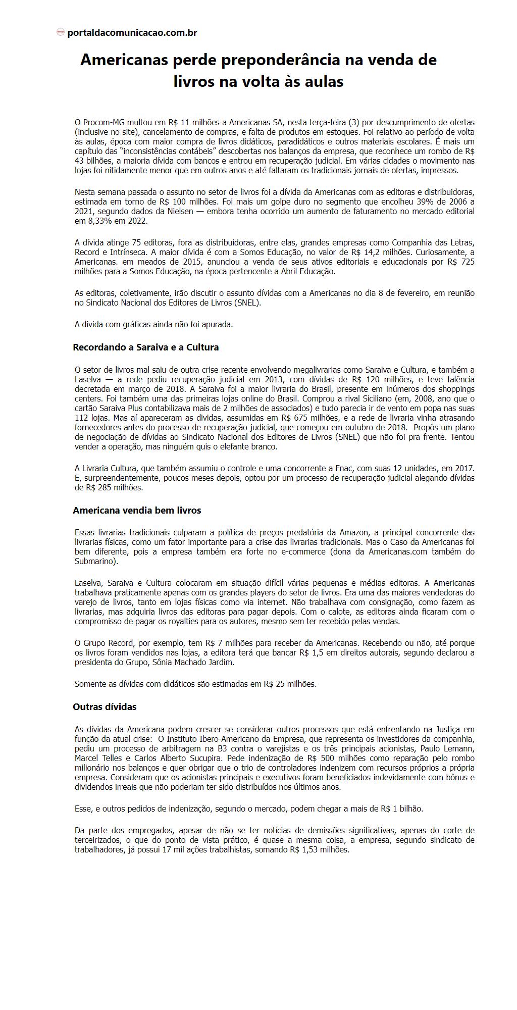Americanas perde preponderância na venda de livros na volta às aulas