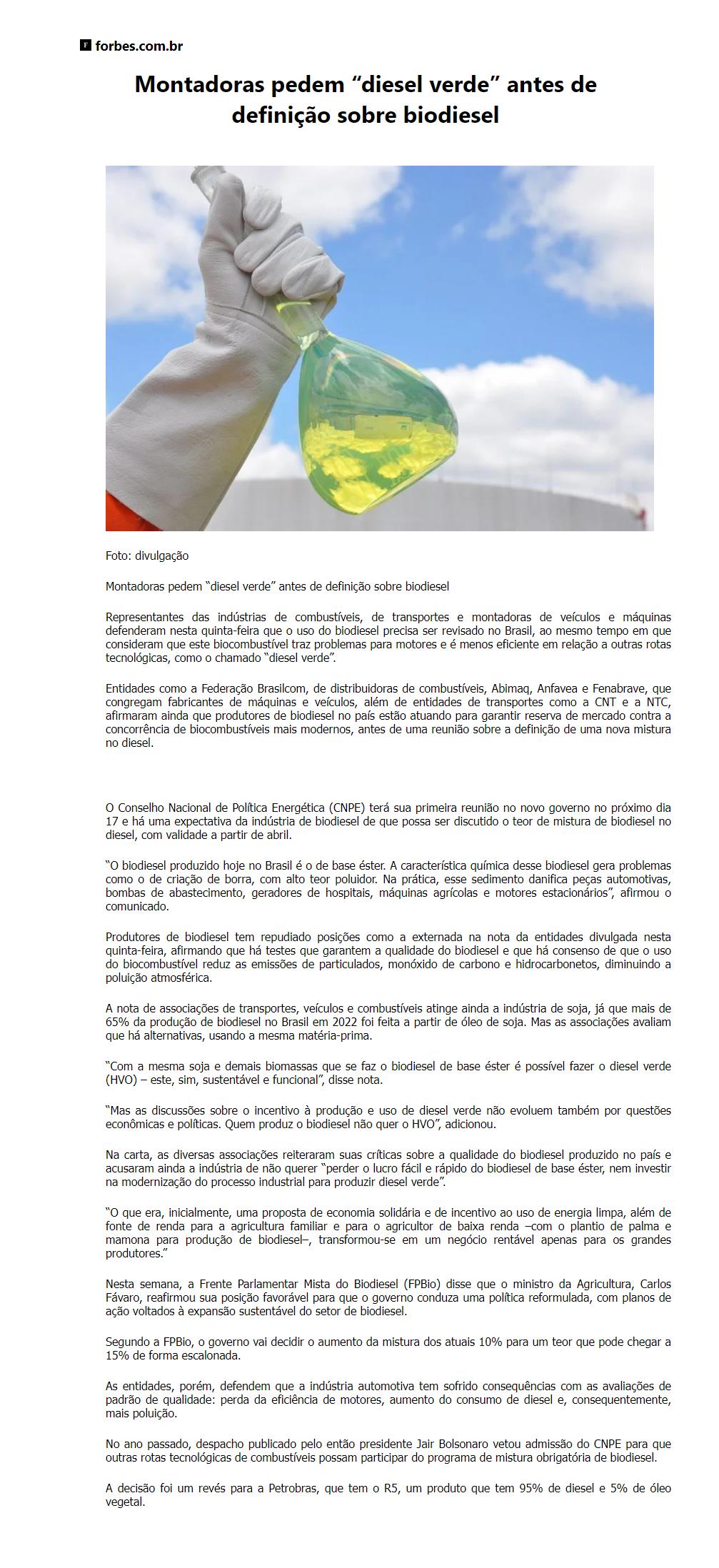 Montadoras pedem diesel verde antes de definição sobre biodiesel