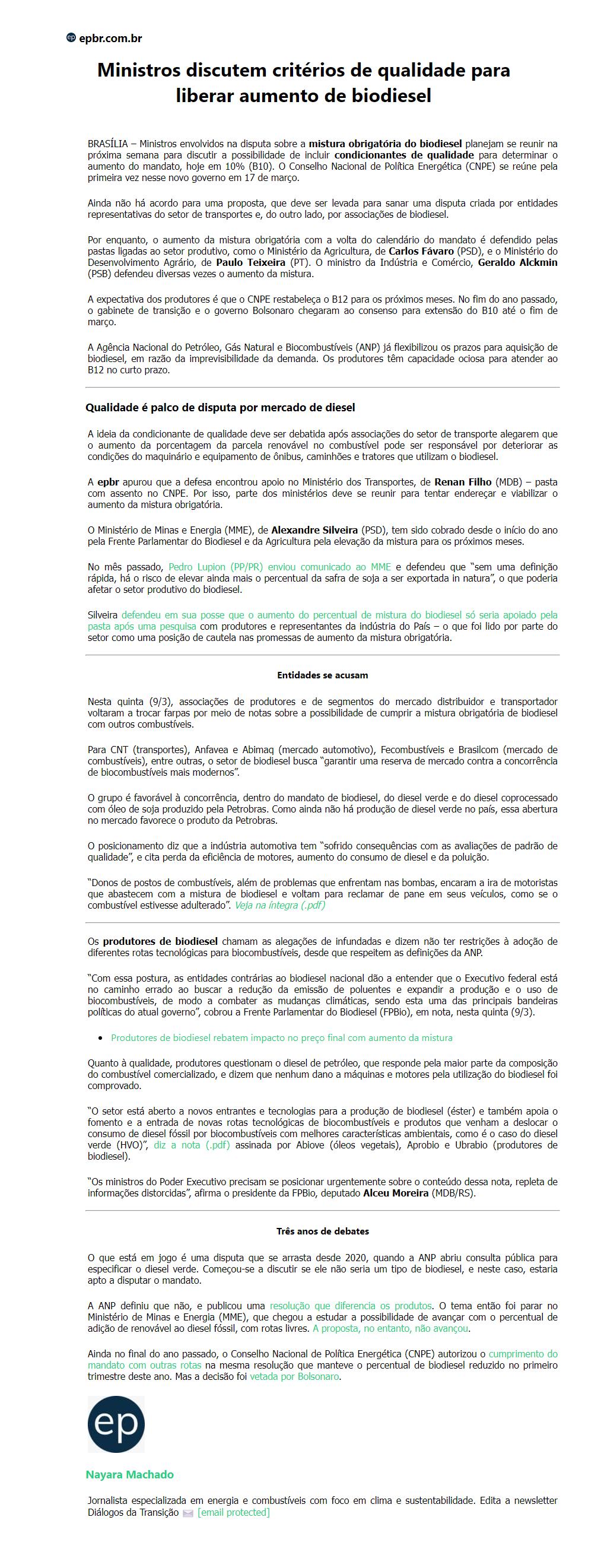 Ministros discutem critérios de qualidade para liberar aumento de biodiesel