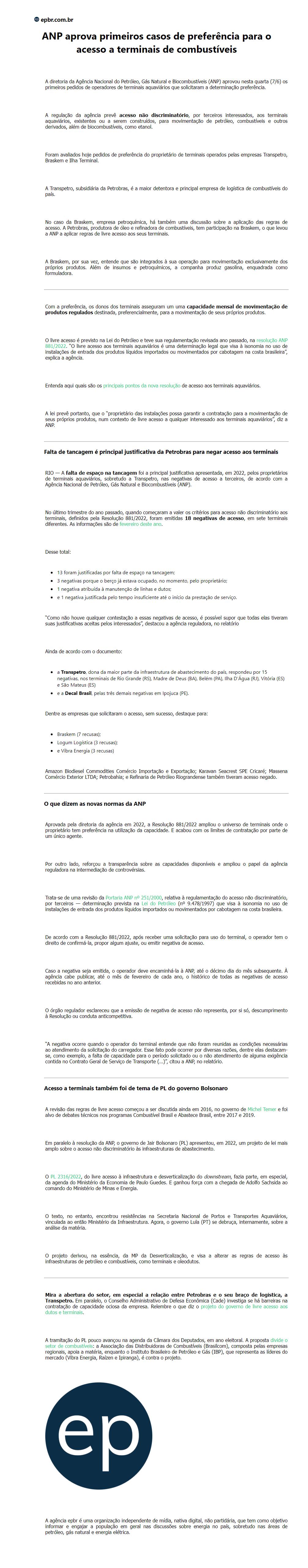 ANP aprova primeiros casos de preferência para o acesso a terminais de combustíveis