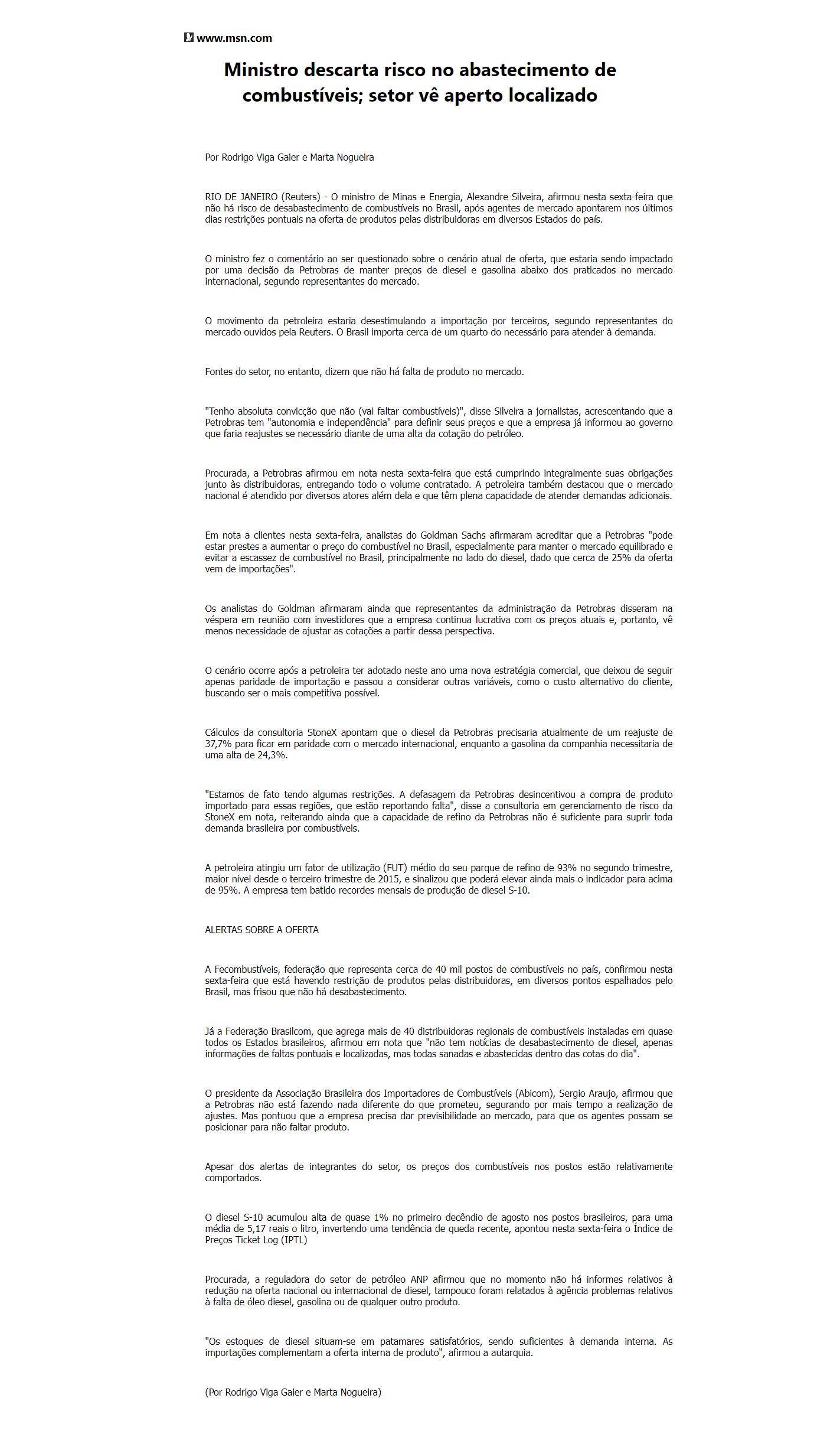 Ministro descarta risco no abastecimento de combustíveis; setor vê aperto localizado