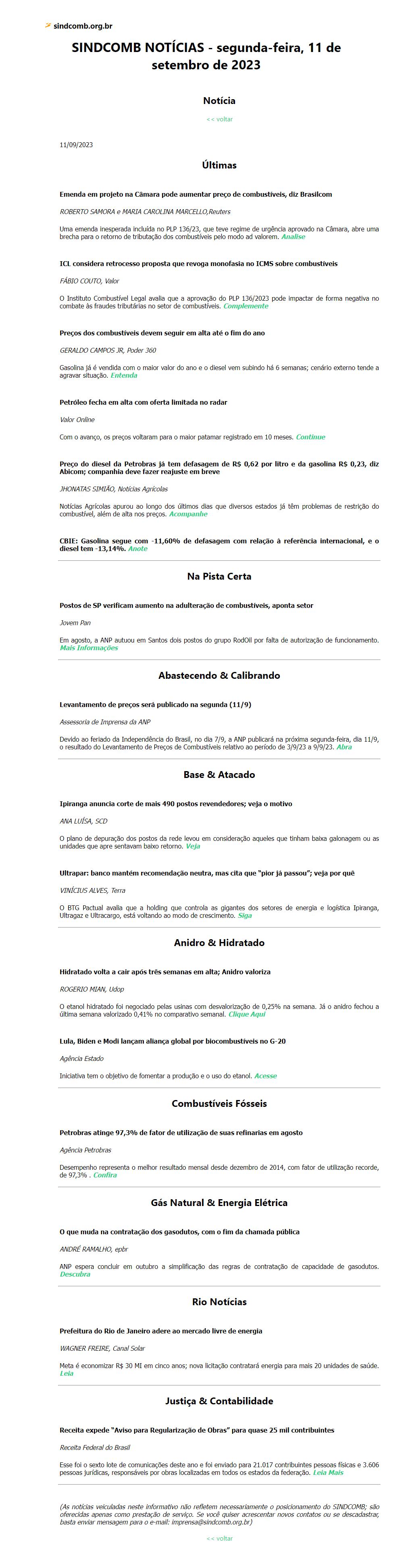 SINDCOMB NOTÍCIAS - segunda-feira, 11 de setembro de 2023