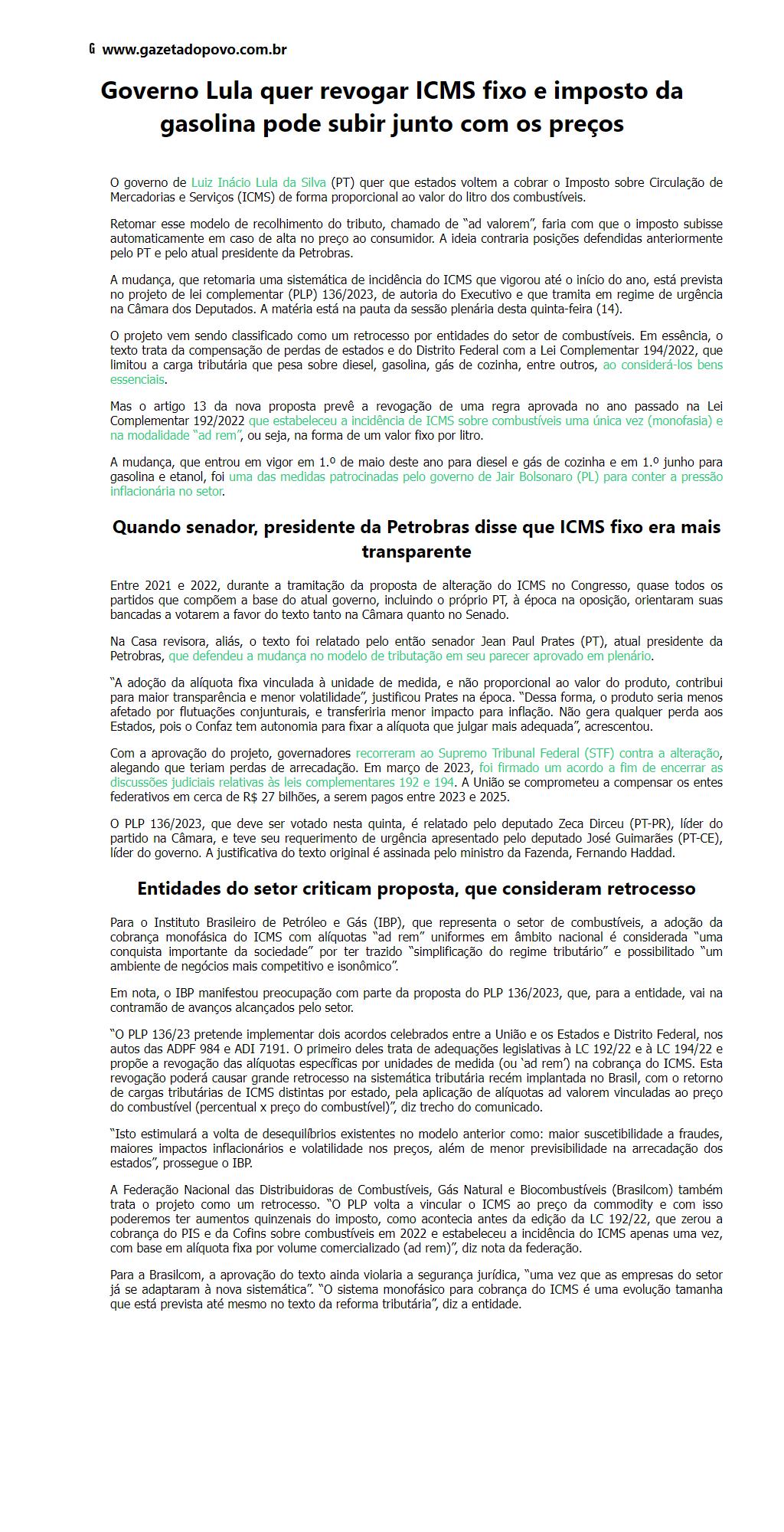Governo Lula quer revogar ICMS fixo e imposto da gasolina pode subir junto com os preços