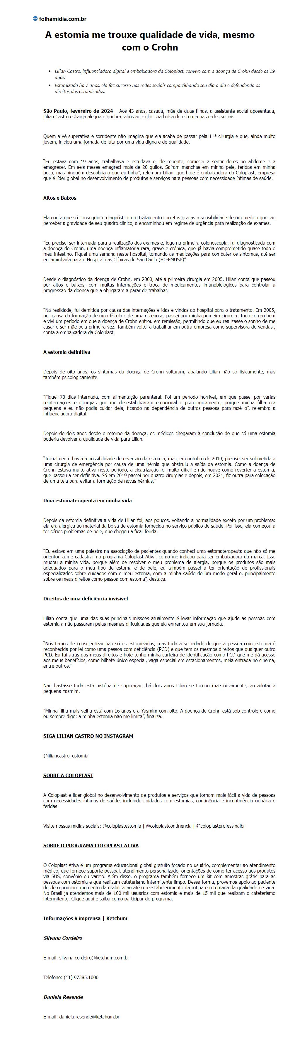 A estomia me trouxe qualidade de vida, mesmo com o Crohn