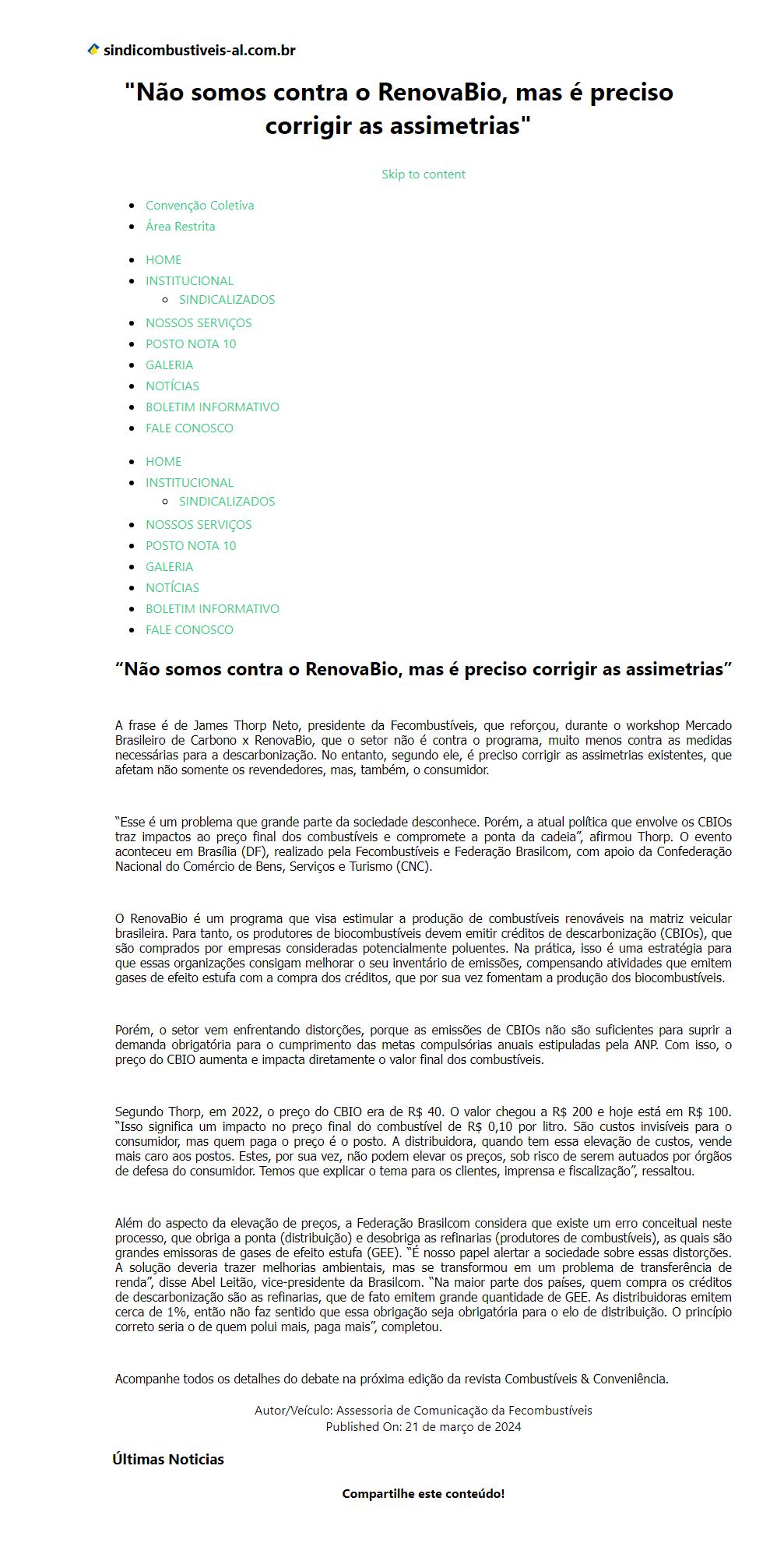"Não somos contra o RenovaBio, mas é preciso corrigir as assimetrias"