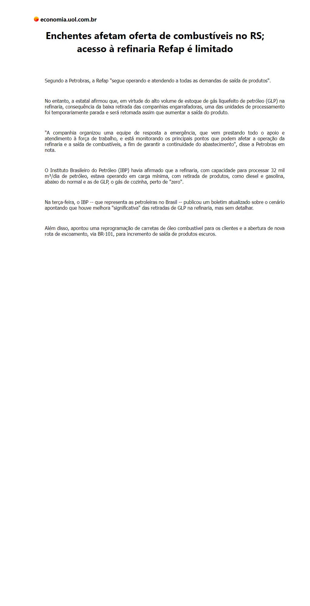 Enchentes afetam oferta de combustíveis no RS; acesso à refinaria Refap é limitado
