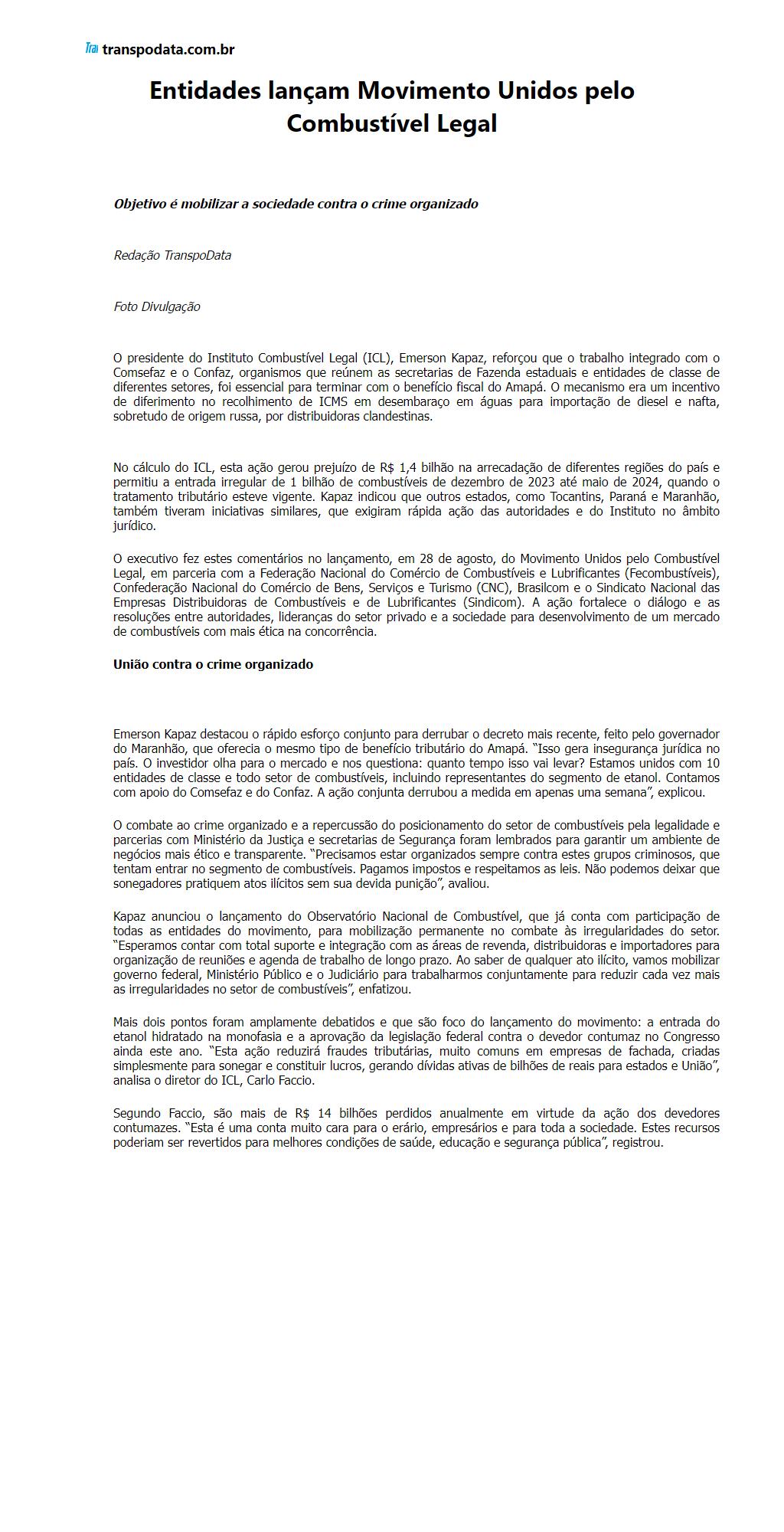 Entidades lançam Movimento Unidos pelo Combustível Legal
