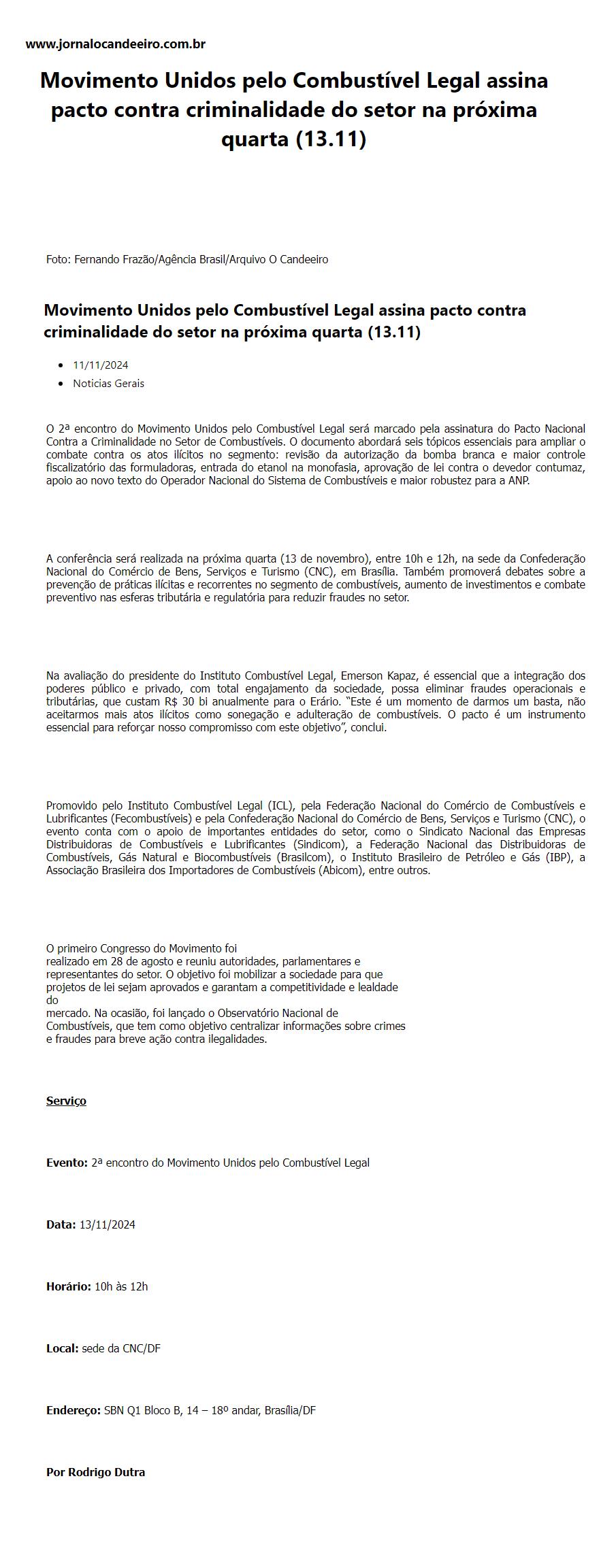 Movimento Unidos pelo Combustível Legal assina pacto contra criminalidade do setor na próxima quarta (13.11)