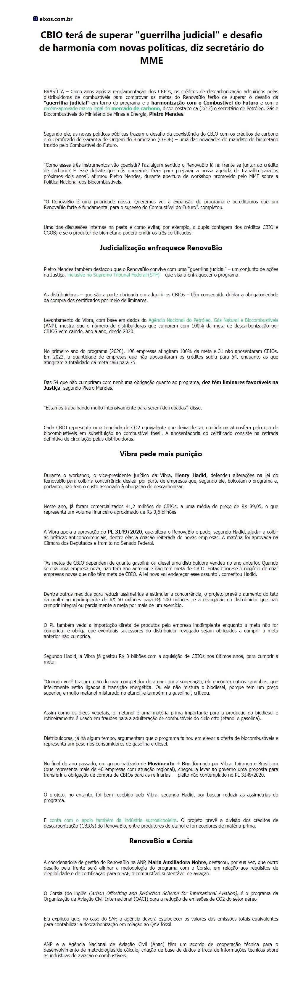 CBIO terá de superar "guerrilha judicial" e desafio de harmonia com novas políticas, diz secretário do MME