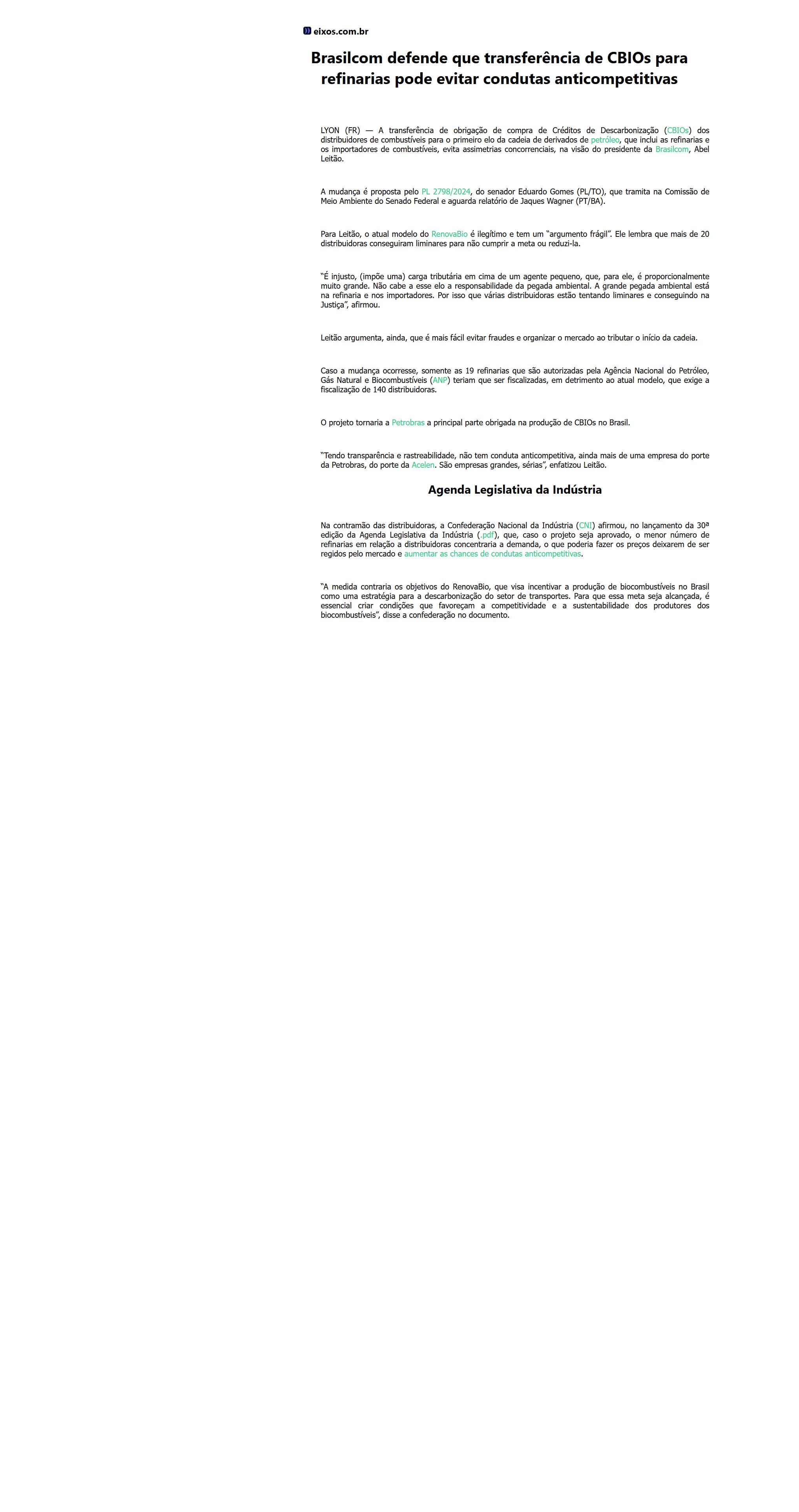 Brasilcom defende que transferência de CBIOs para refinarias pode evitar condutas anticompetitivas