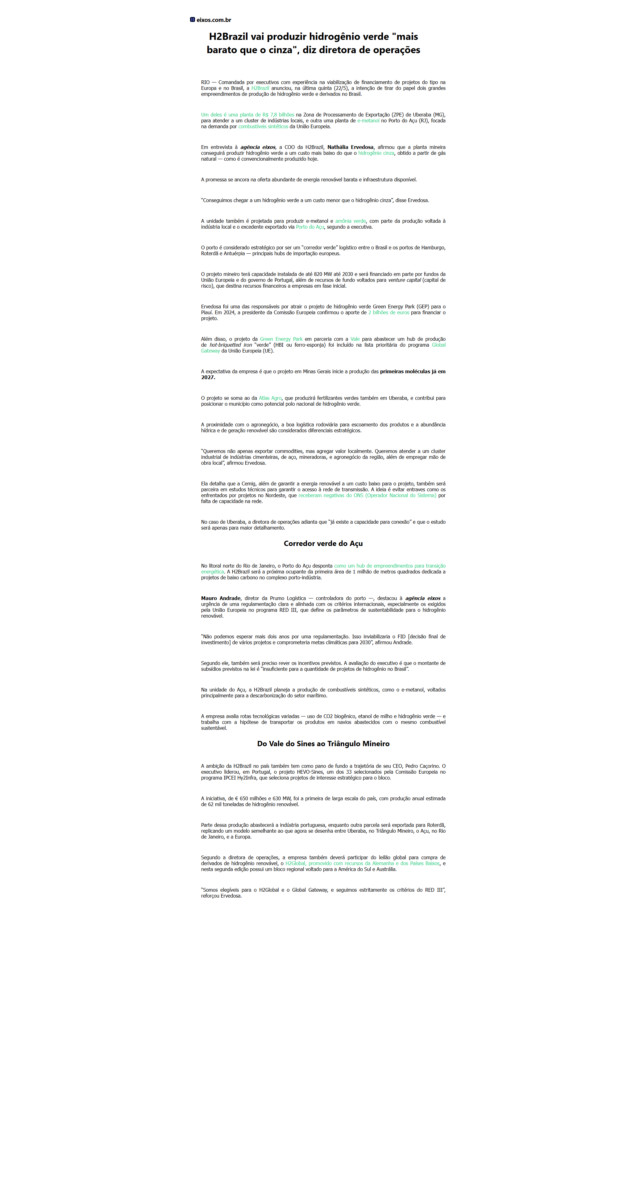 H2Brazil vai produzir hidrogênio verde "mais barato que o cinza", diz diretora de operações