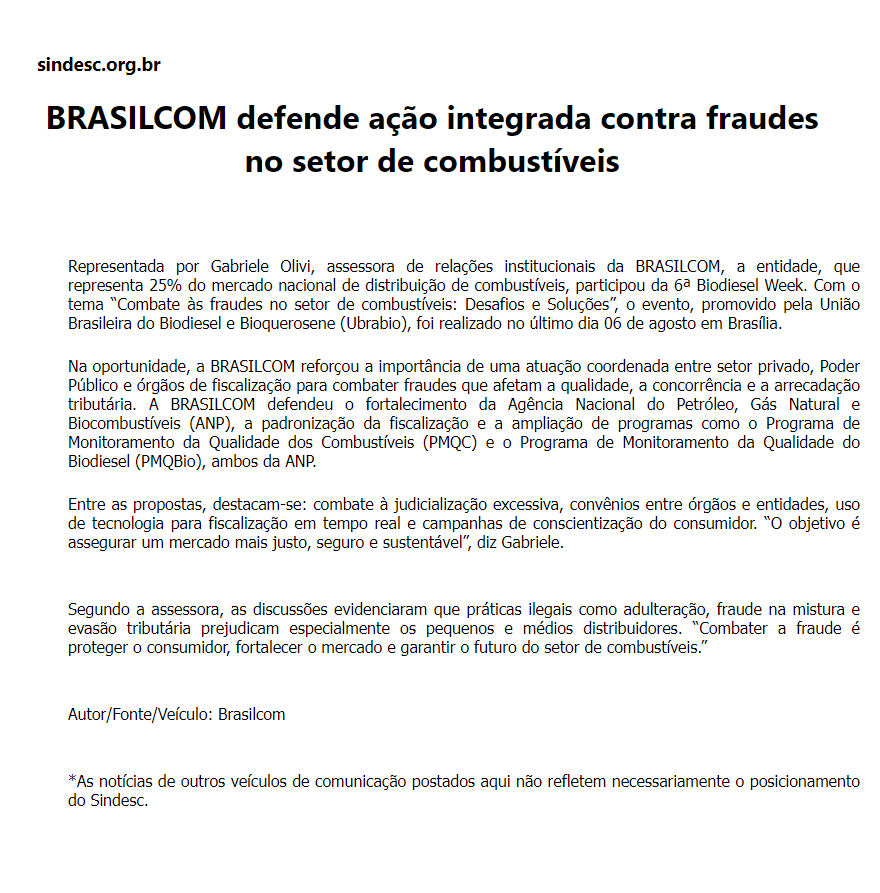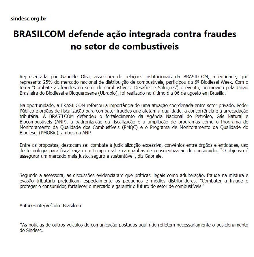BRASILCOM defende ação integrada contra fraudes no setor de combustíveis