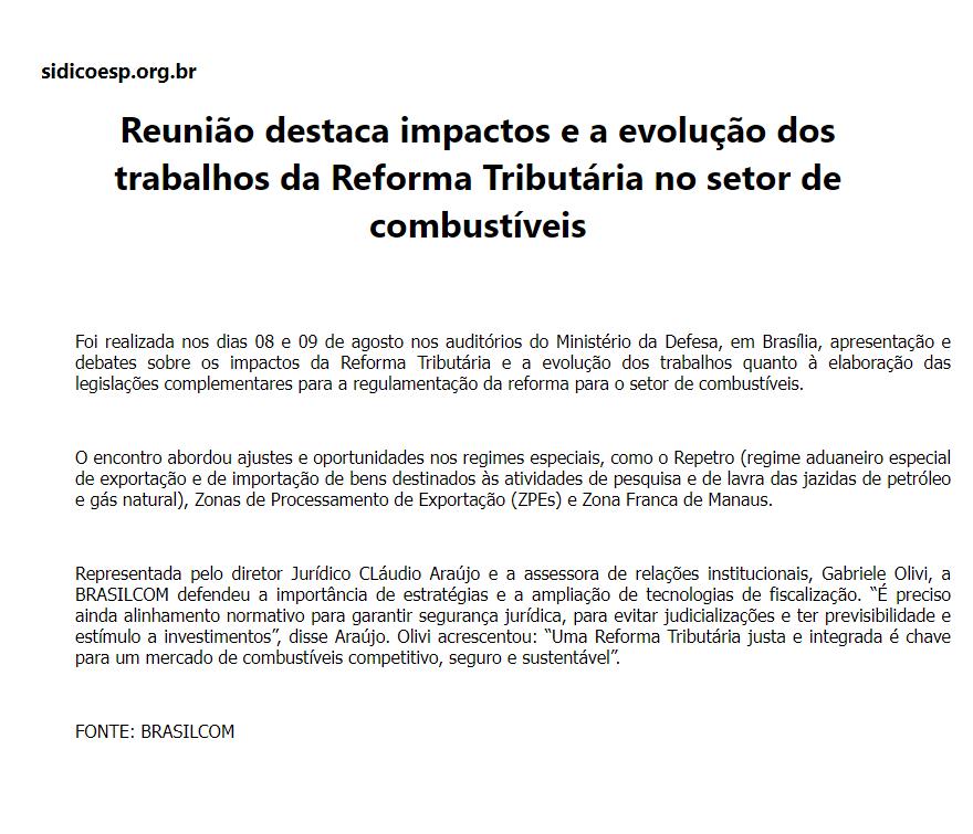 Reunião destaca impactos e a evolução dos trabalhos da Reforma Tributária no setor de combustíveis