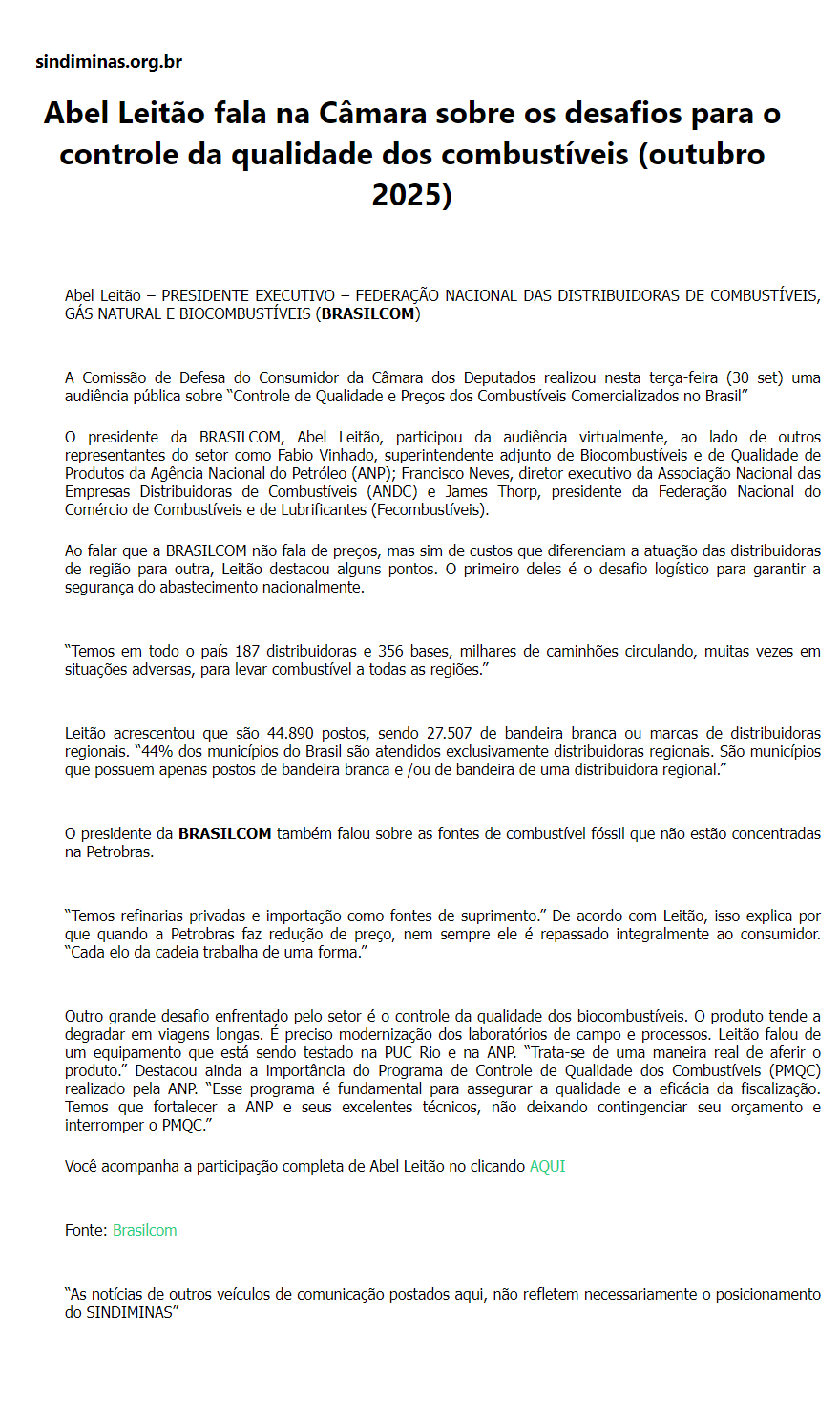 Abel Leitão fala na Câmara sobre os desafios para o controle da qualidade dos combustíveis (outubro 2025)